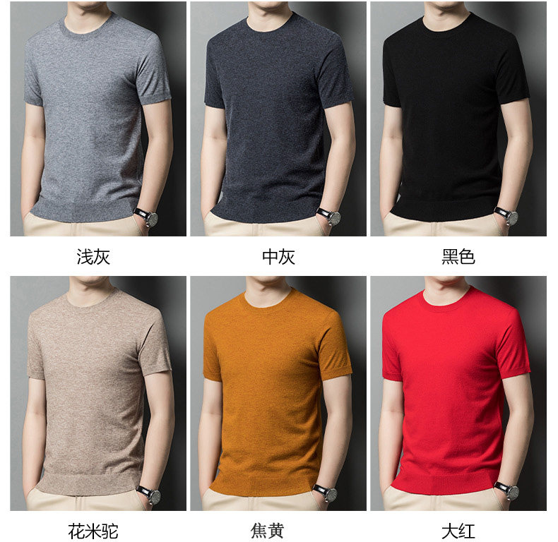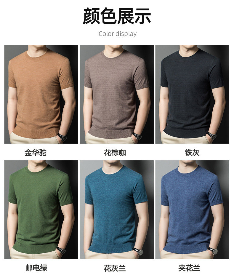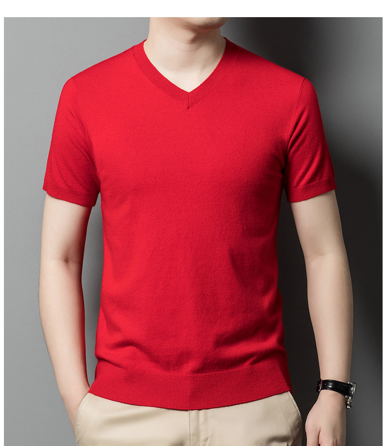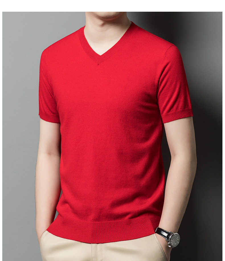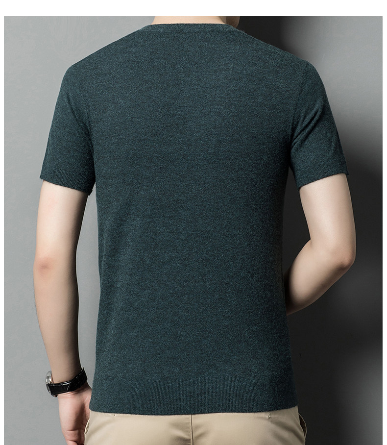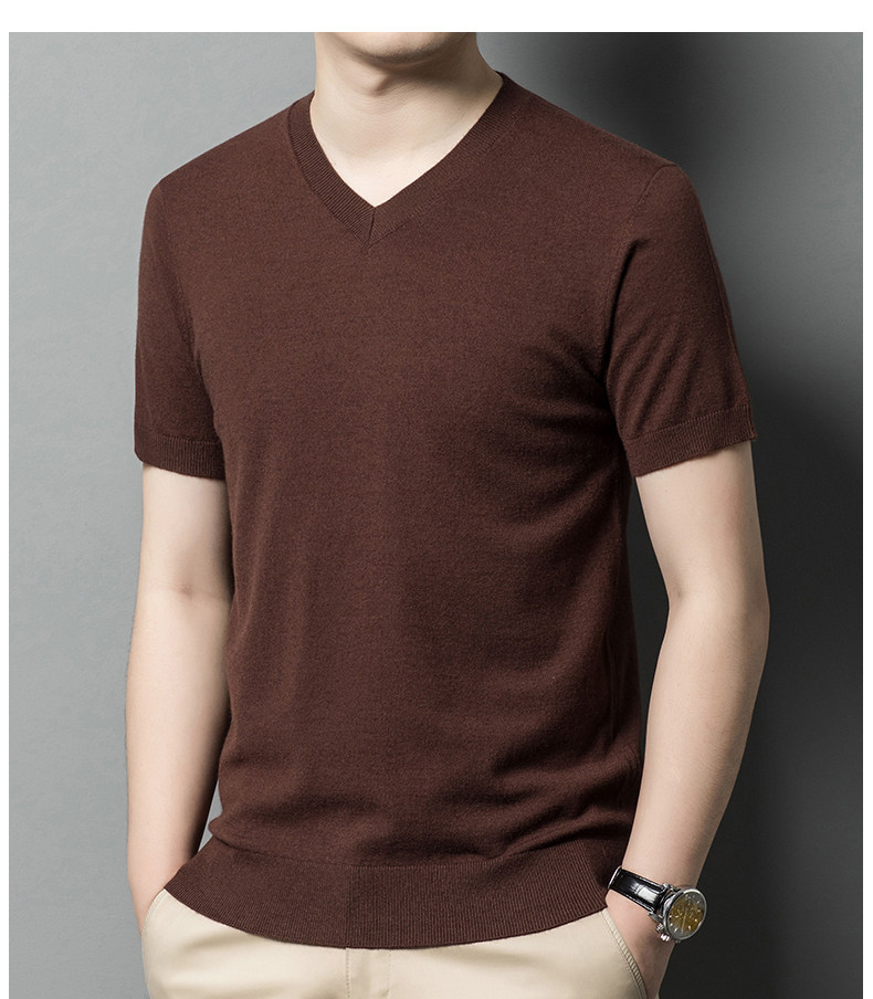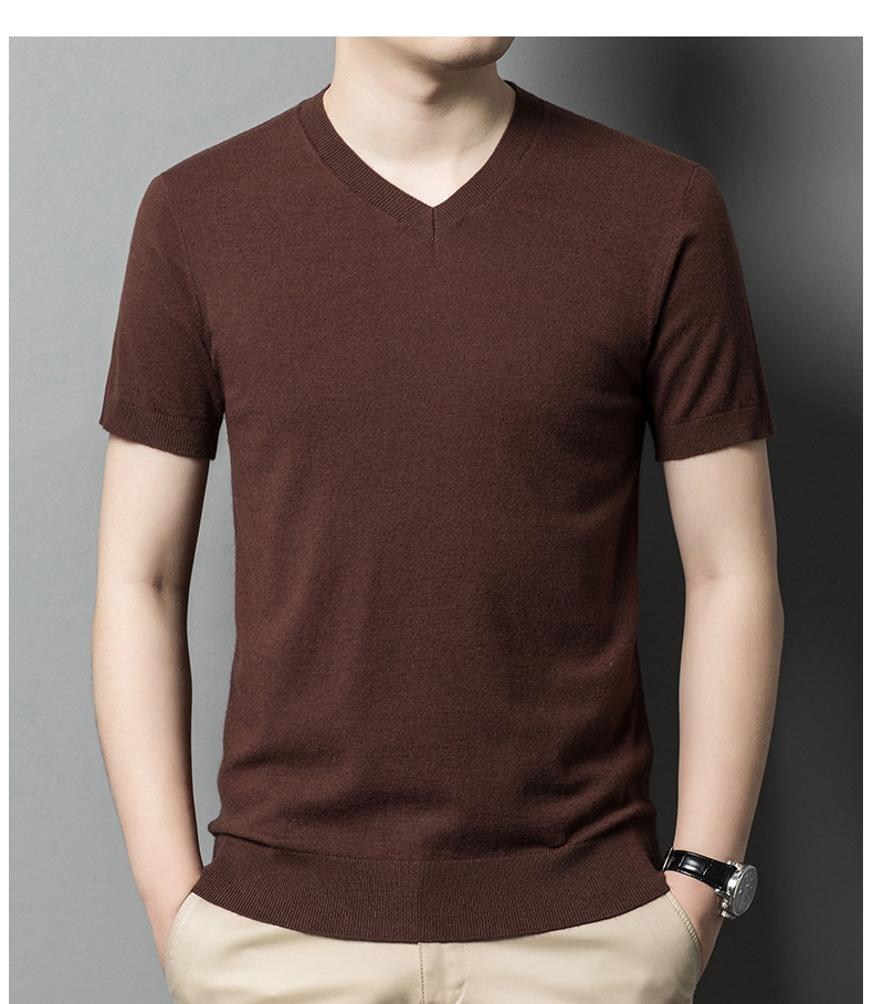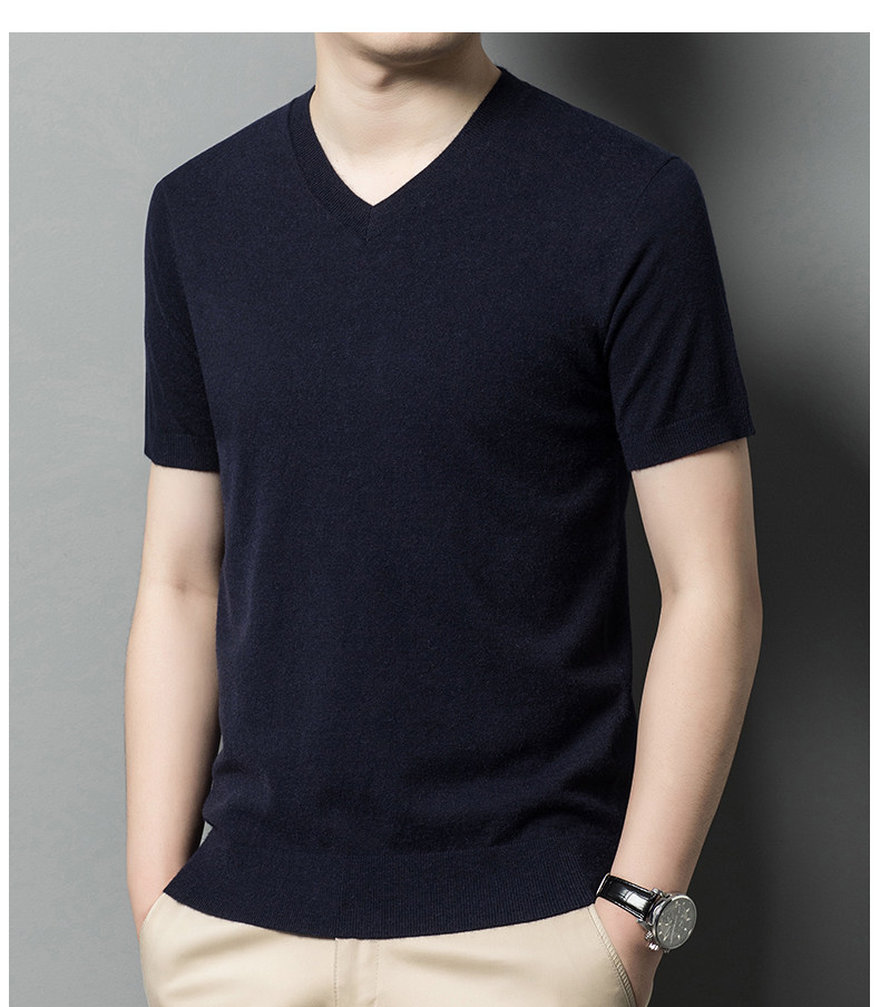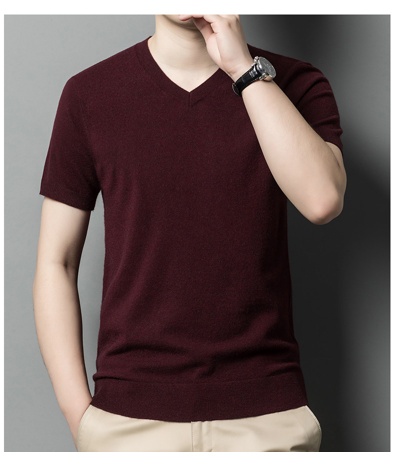 2025新款濮院羊毛衫男商务高端V领短袖毛衣男士半袖打底羊绒衫薄