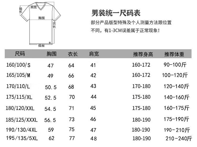 尺码 165/M,170/L,175/XL,180/XXL,185/XXXL,190/4XL,195/5XL
