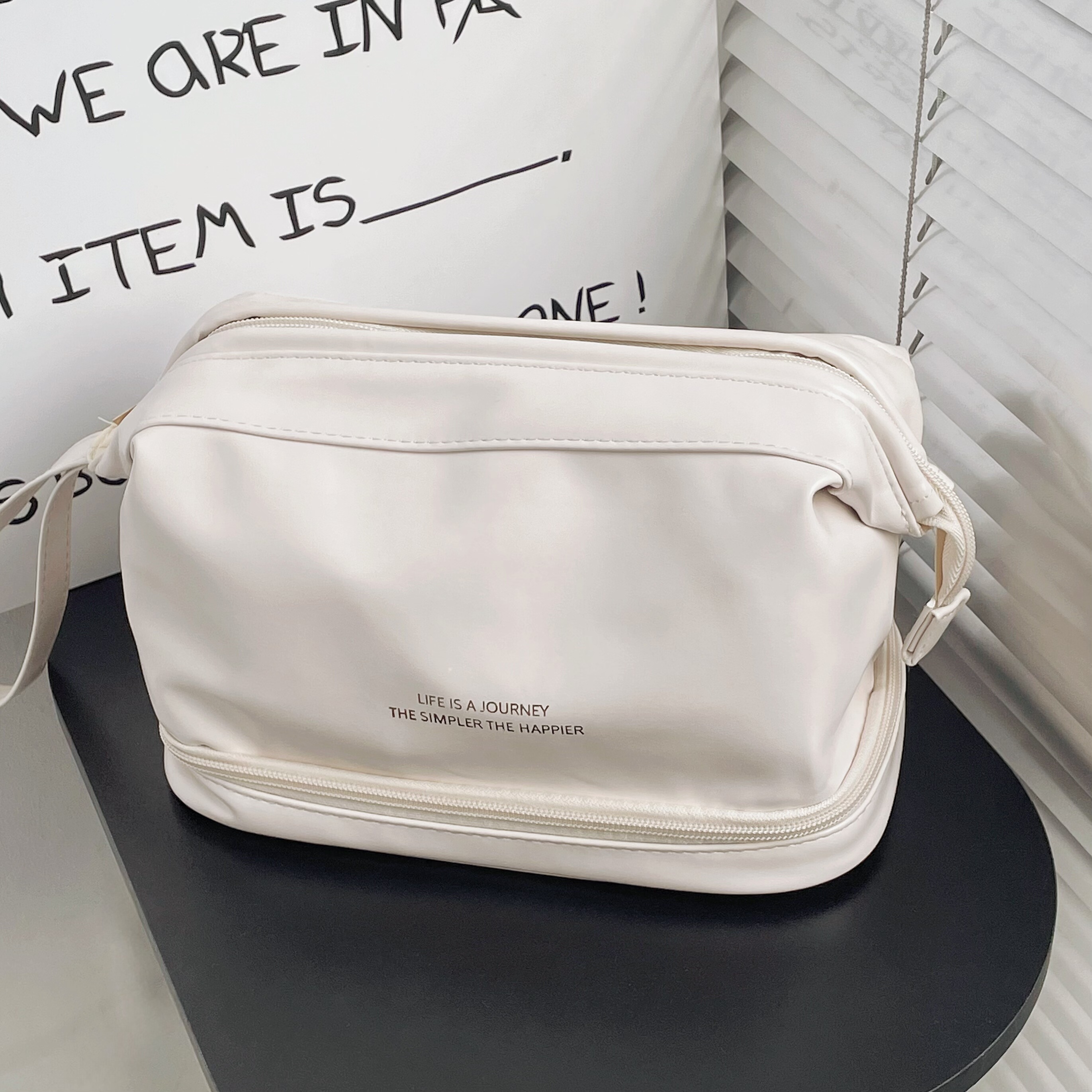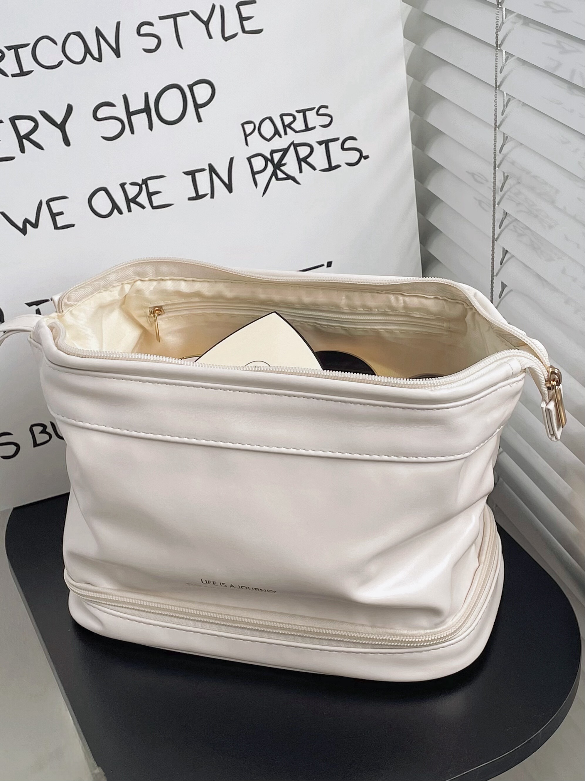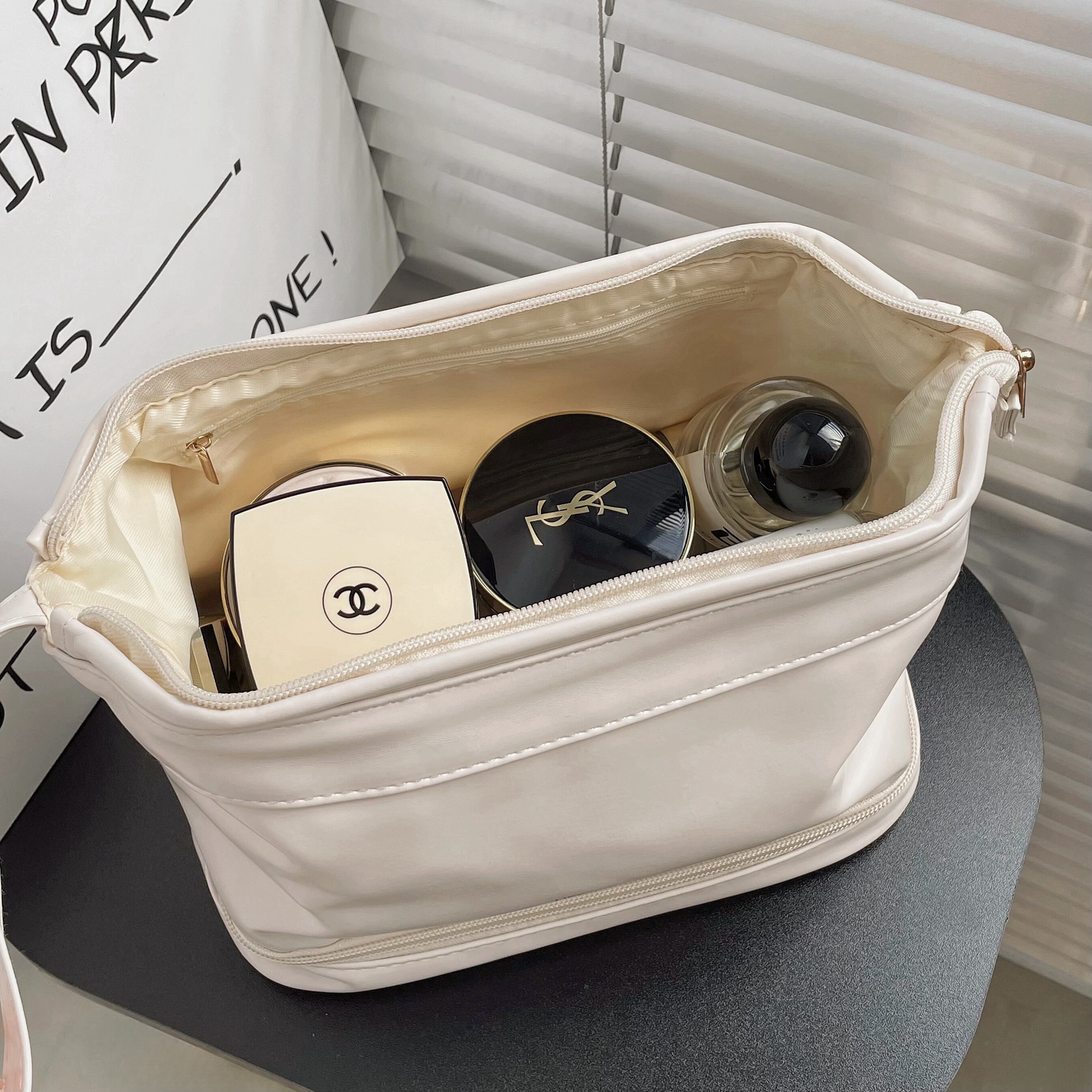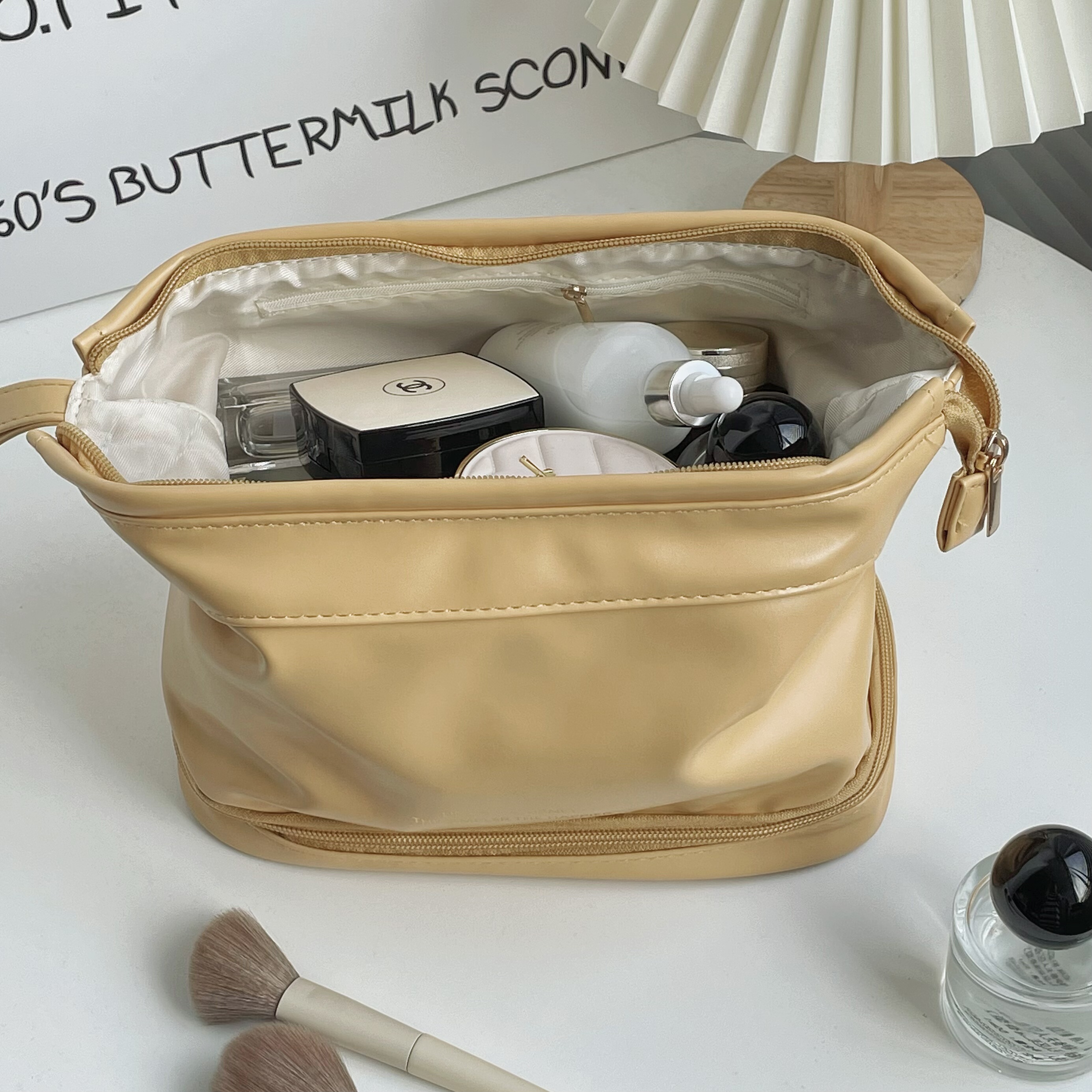 Clasificación de colores Los productos para el cuidado de la piel de color blanco lechoso de doble capa se pueden manipular directamente,Almacenamiento de doble capa negro de gran capacidad.,La doble capa de amarillo lechoso es tan suave.,Rosa leche de doble capa, se pueden utilizar cosméticos con brocha,Blanco lechoso de una sola capa, suave y fufu al tacto.