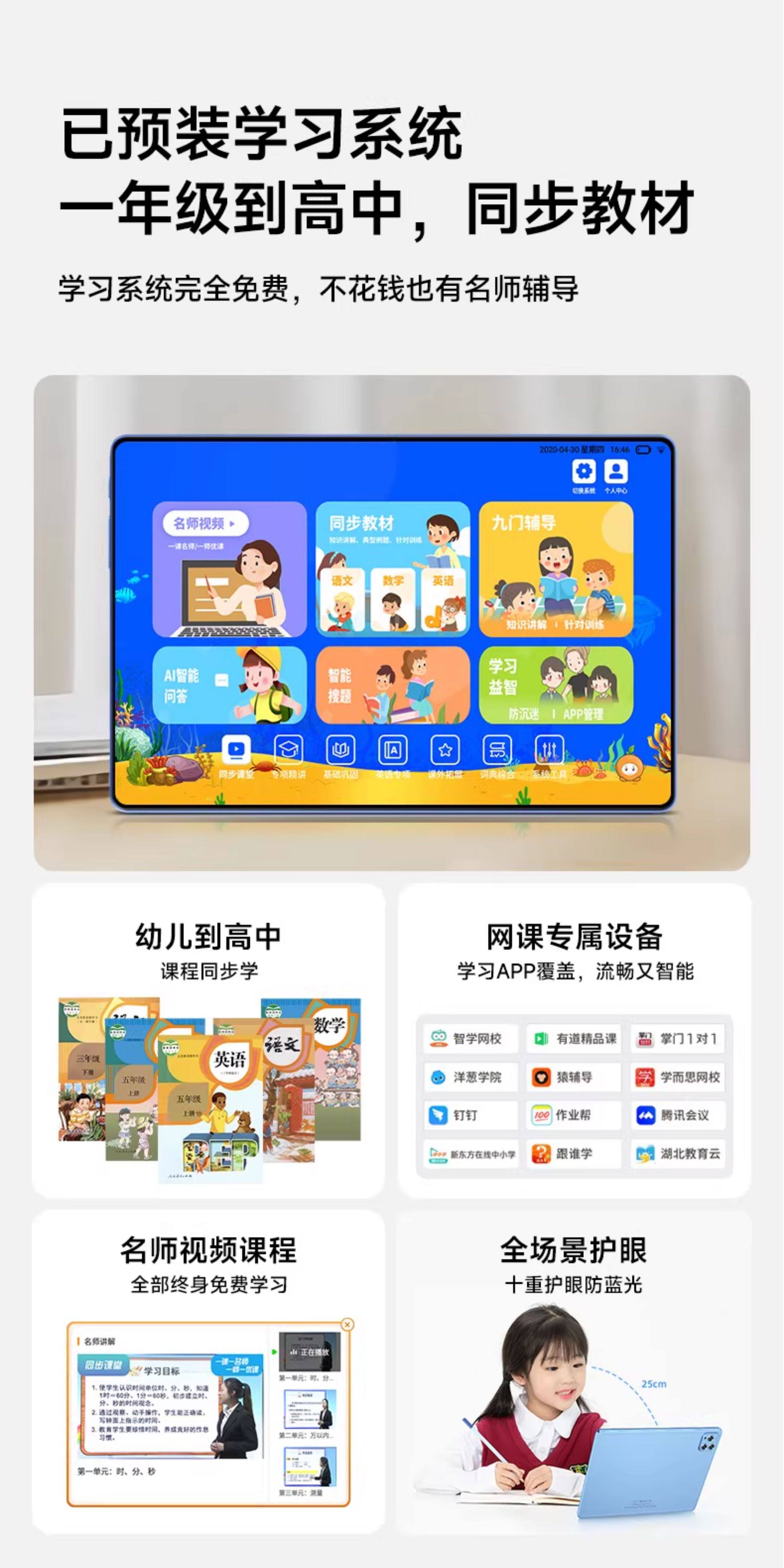 【官方正品】2025新款平板电脑Pad Pro高清护眼全面屏5G可插卡游戏画画办公二合一 学生学习网课专用学习机