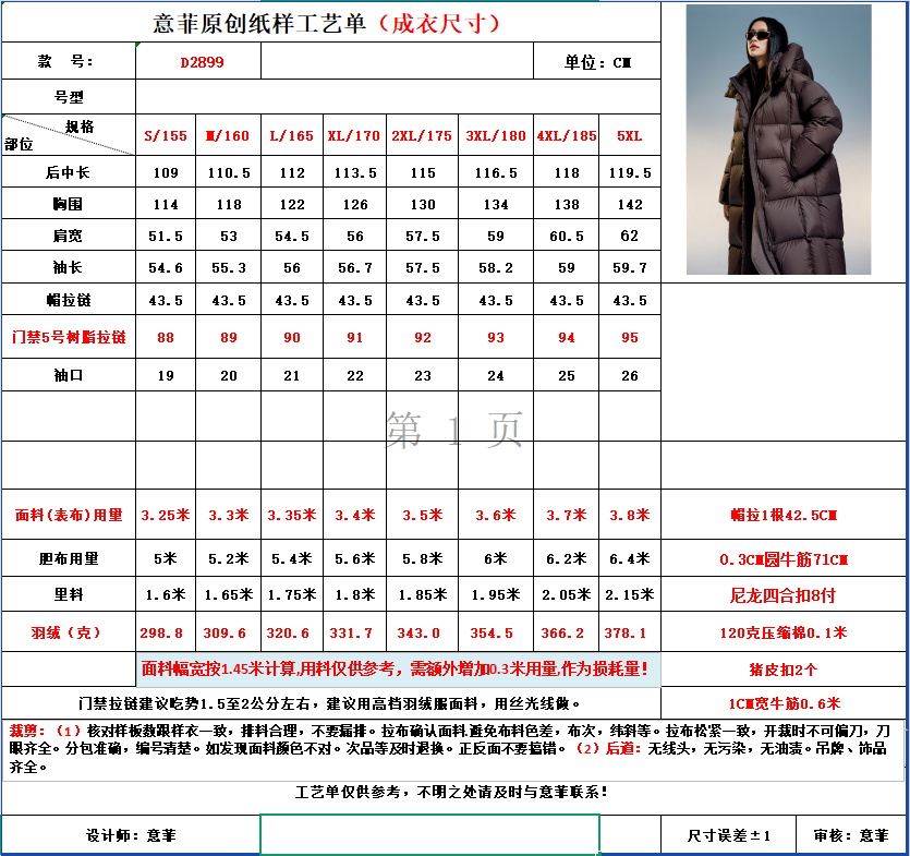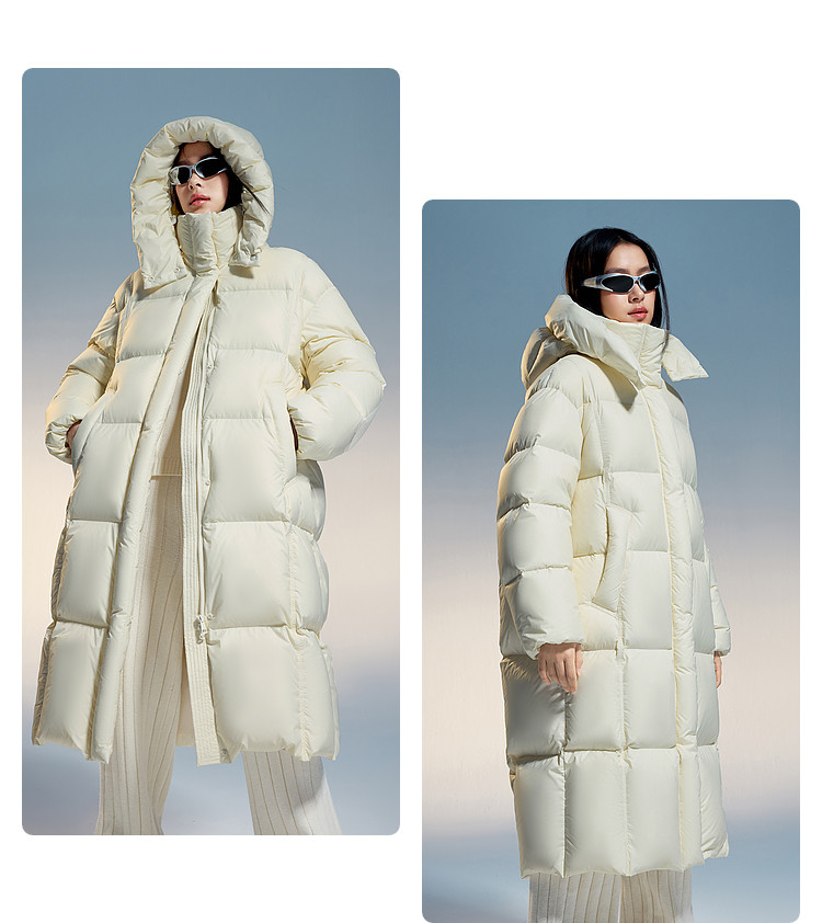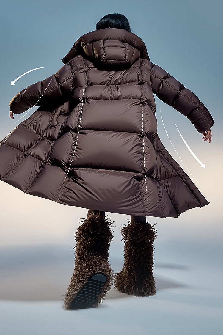 羽绒服纸样女长款龟背廓形过膝加厚连帽泡芙面包棉衣棉服图纸样版