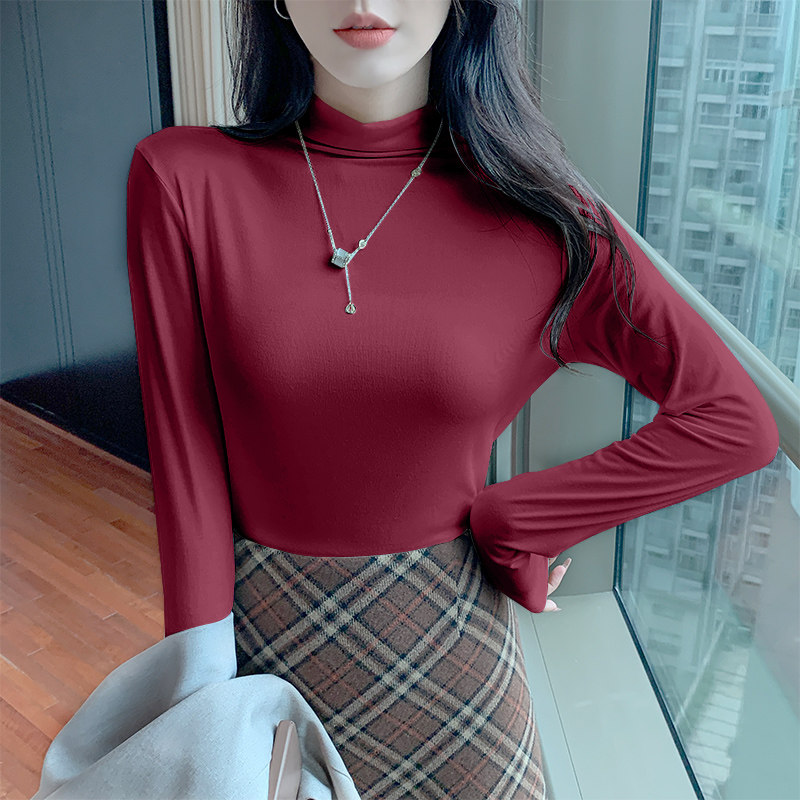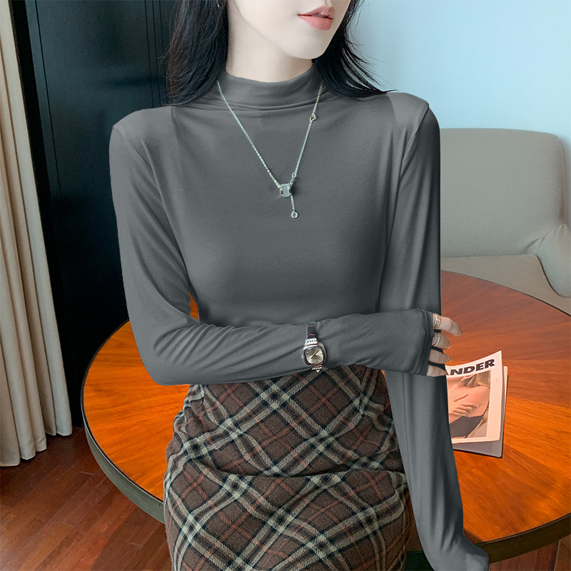Spring and Autumn Trendy Half-High Collar Stylish Long-Sleeve T-Shirt for Women 2026 New Versatile Modal Inner Wear Slim-Fit Shirt