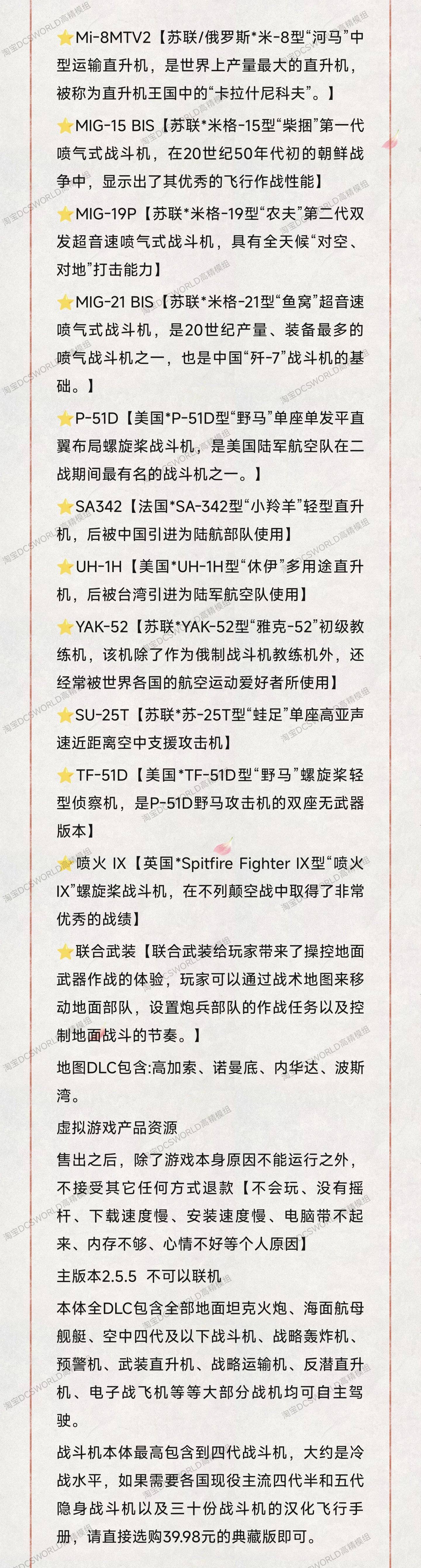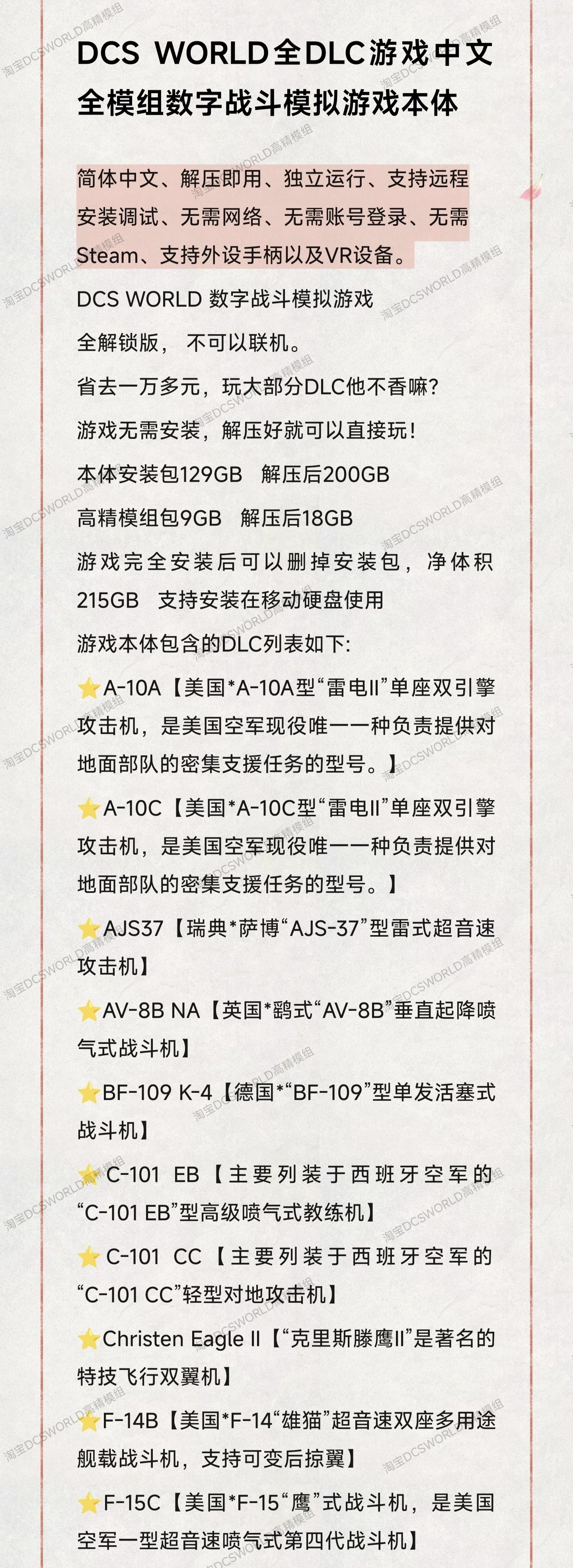 Dcs World Full Dlc Full Module Simplified Chinese Version for All Platforms, Unzip and Use Immediately, No Installation Required, Supports Peripherals and Vr