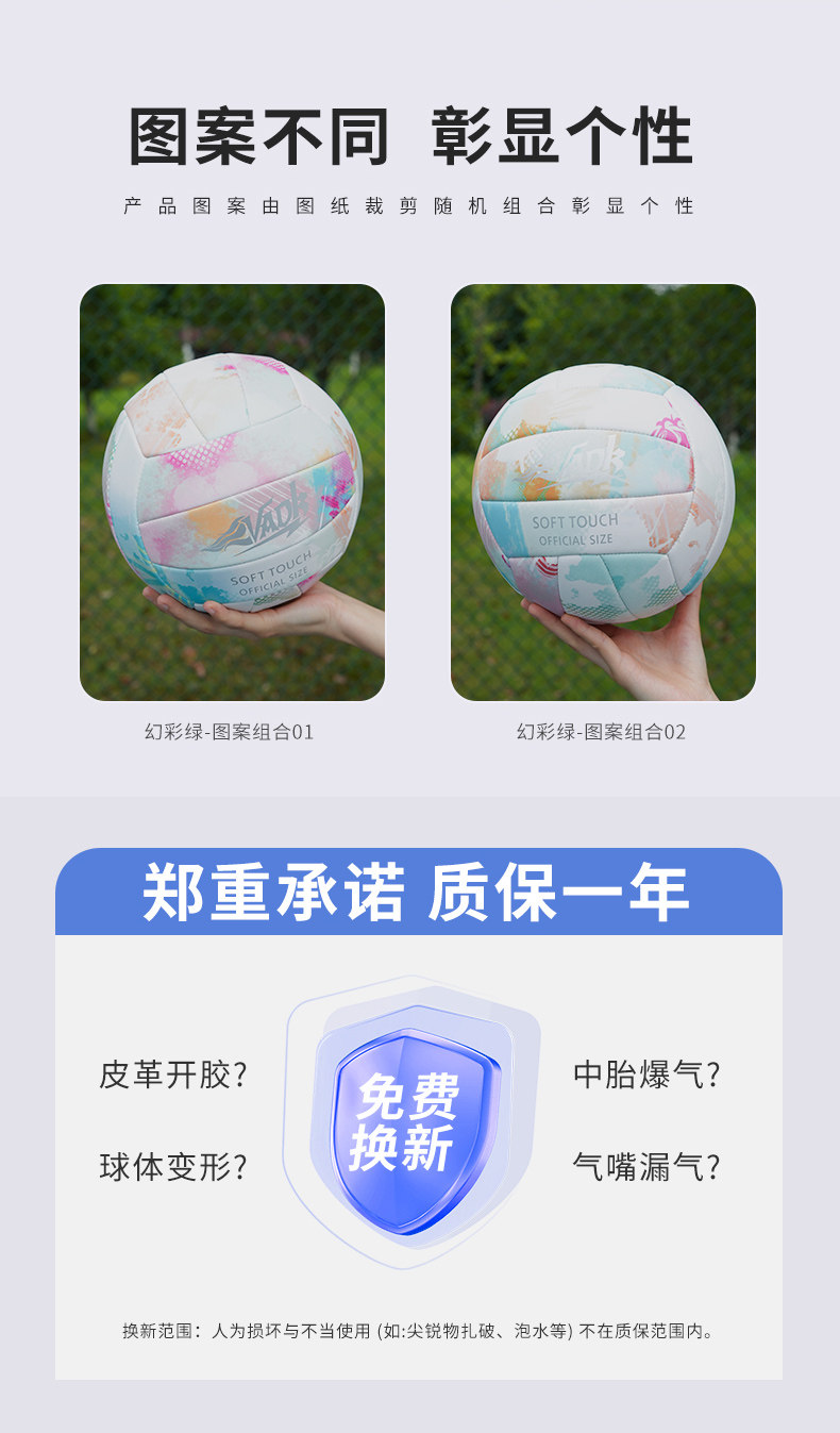 颜色分类 质保365天 送全套打气配件 送运费险,幻彩绿5号排球,幻彩紫5号排球,幻彩粉5号排球,幻彩黑白5号排球,刻字定制刻字拍此选项下后联系客服,以下为气排球,气排球不支持刻字,彩绿色5号气排球,彩绿色7号气排球,彩紫色5号气排球,彩紫色7号气排球,黑白色5号气排球,黑白色7号气排球