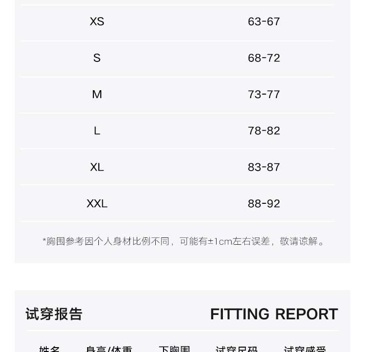 China (cm) 160-165/84-86 165-170 / 88-90 167-172 / 92-96 168-173 / 98-102 170-176 / 106-110