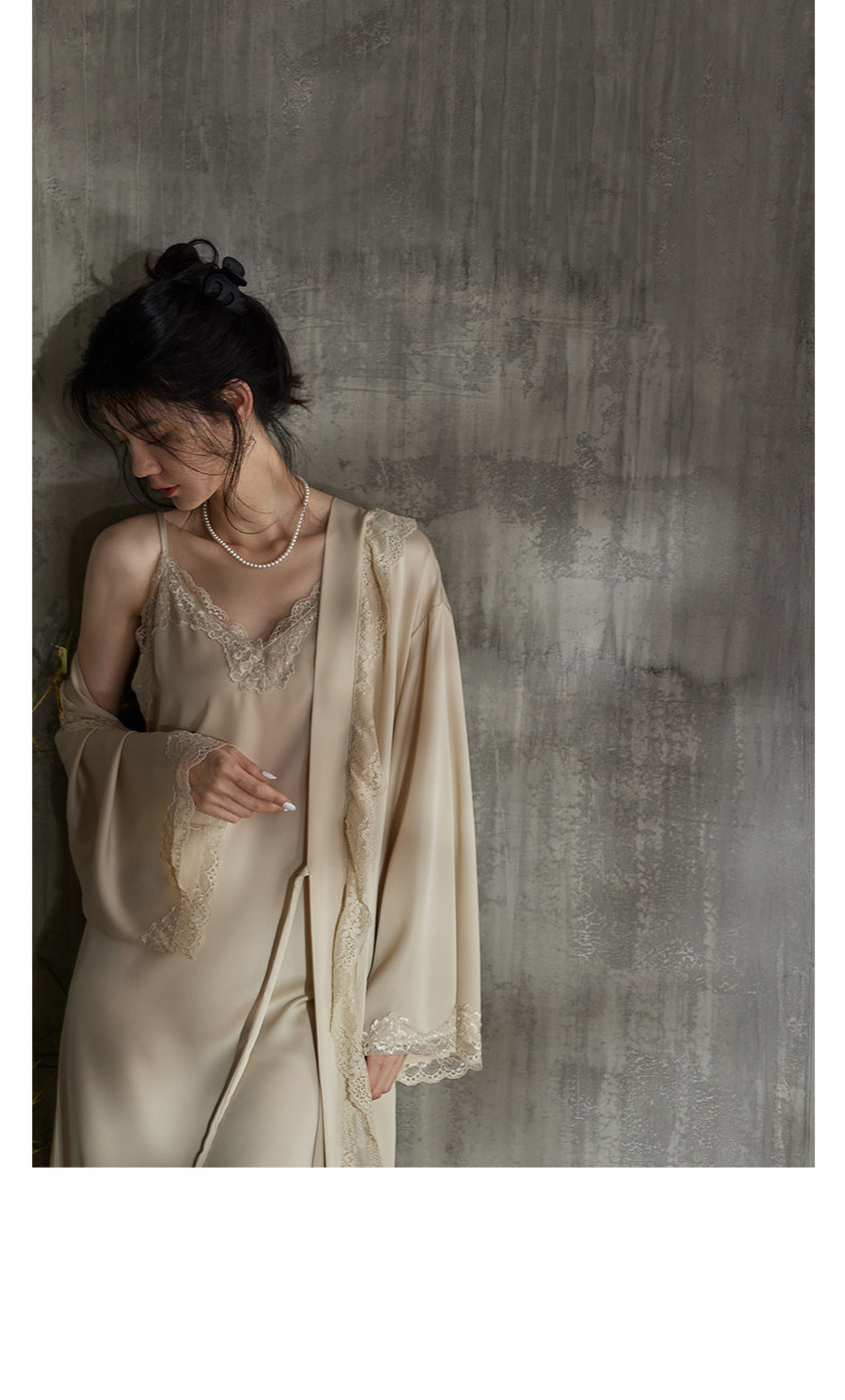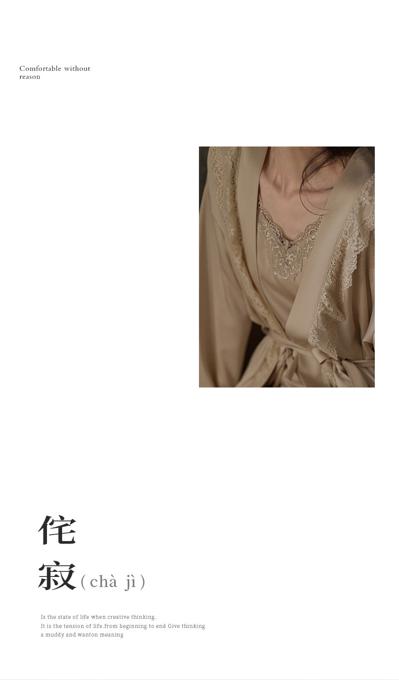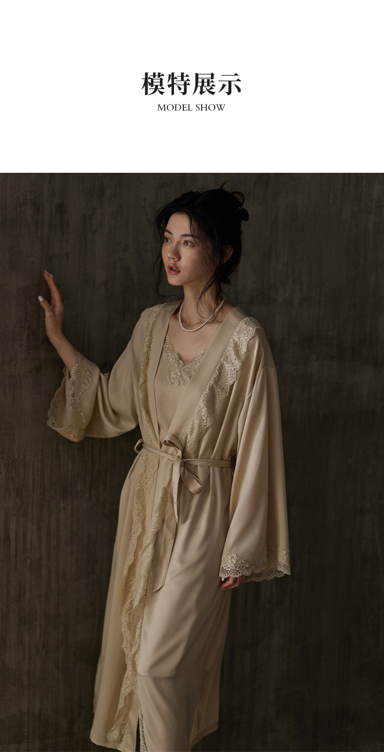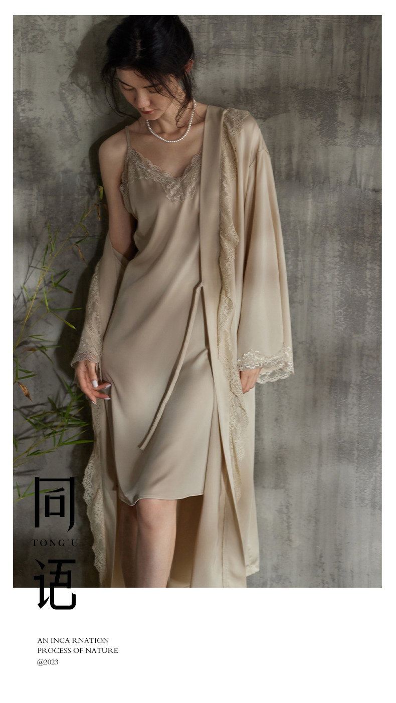 同语睡袍女春秋冬季冰丝长袖家居服睡裙晨袍浴袍薄新款睡衣女套装