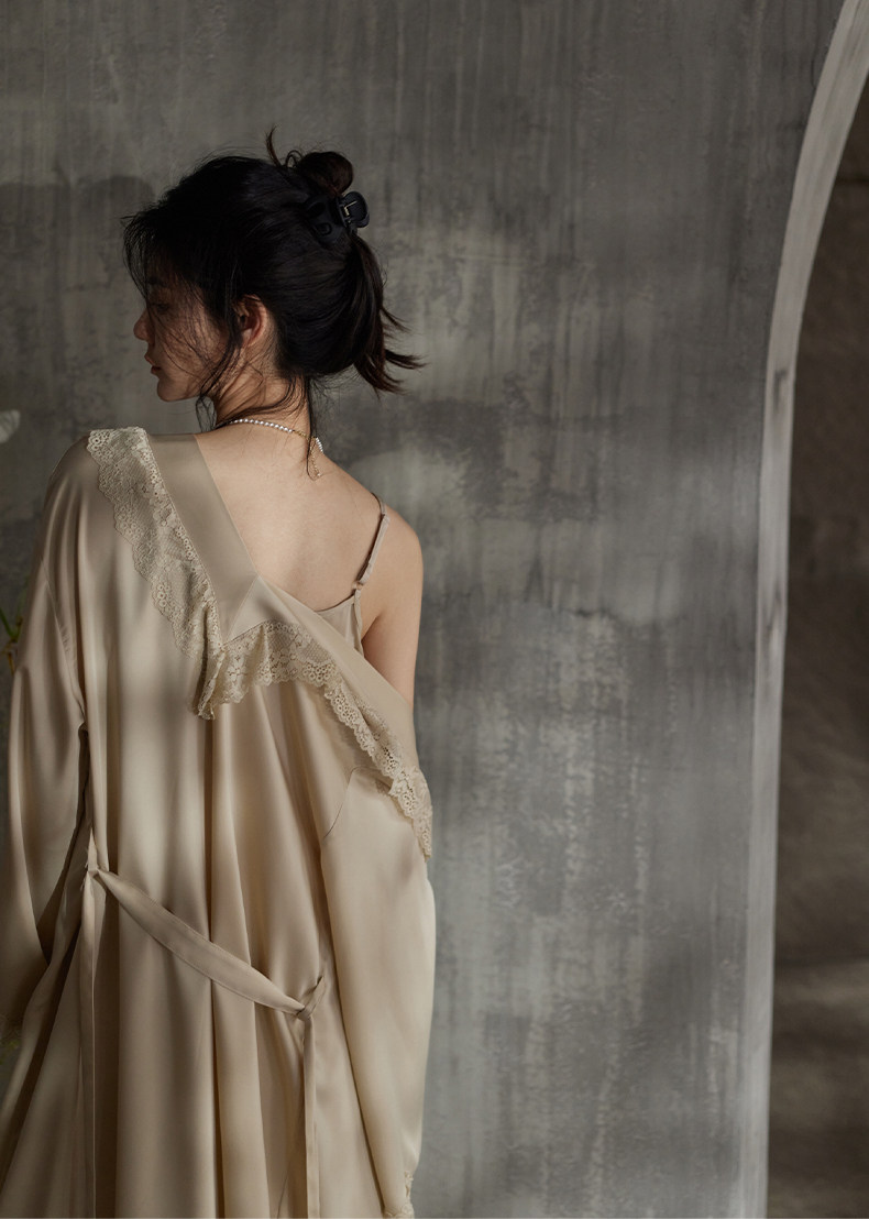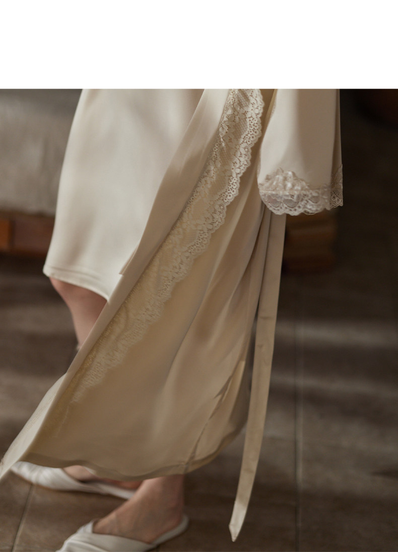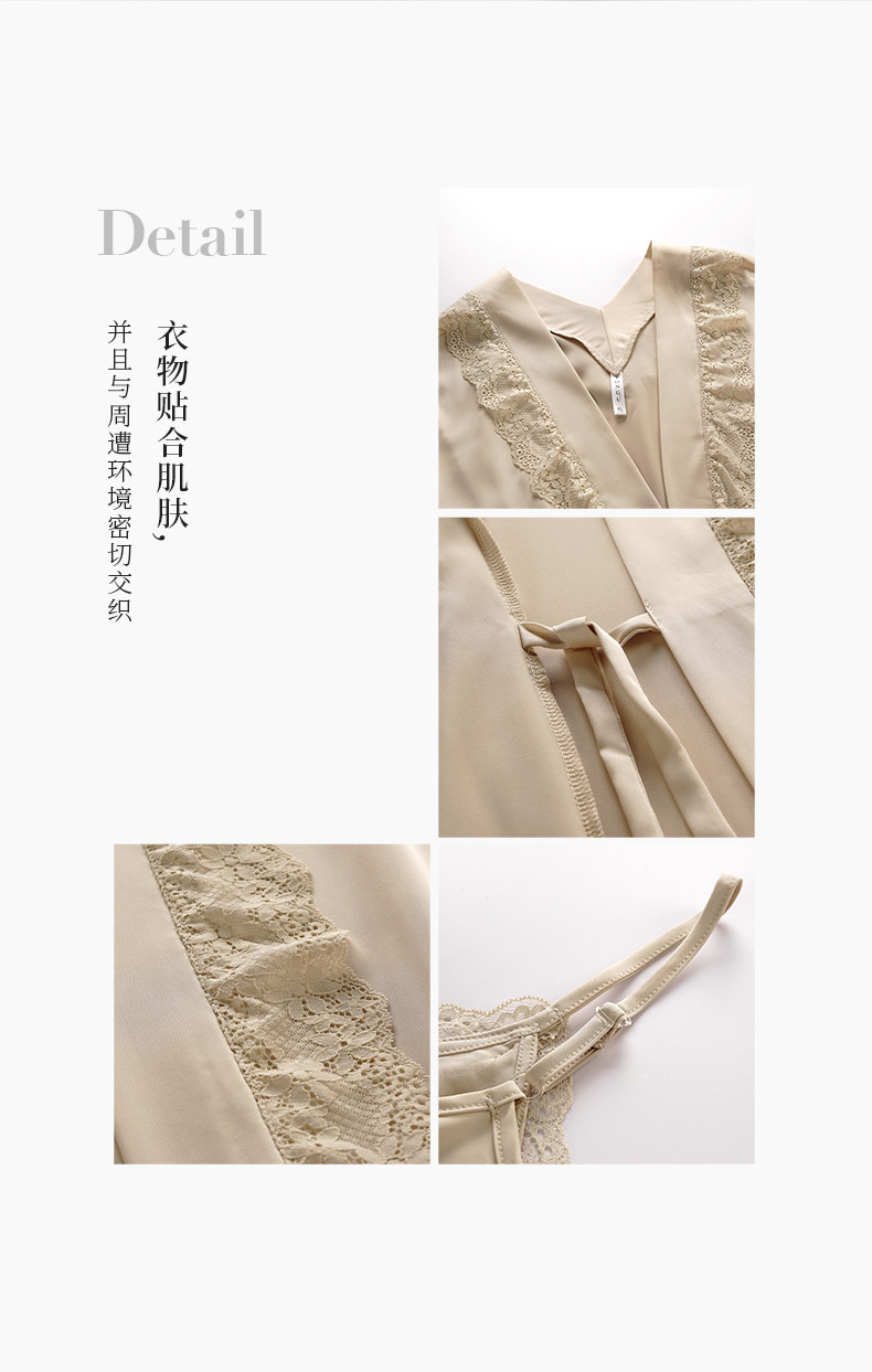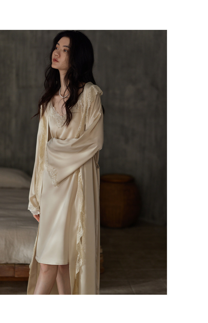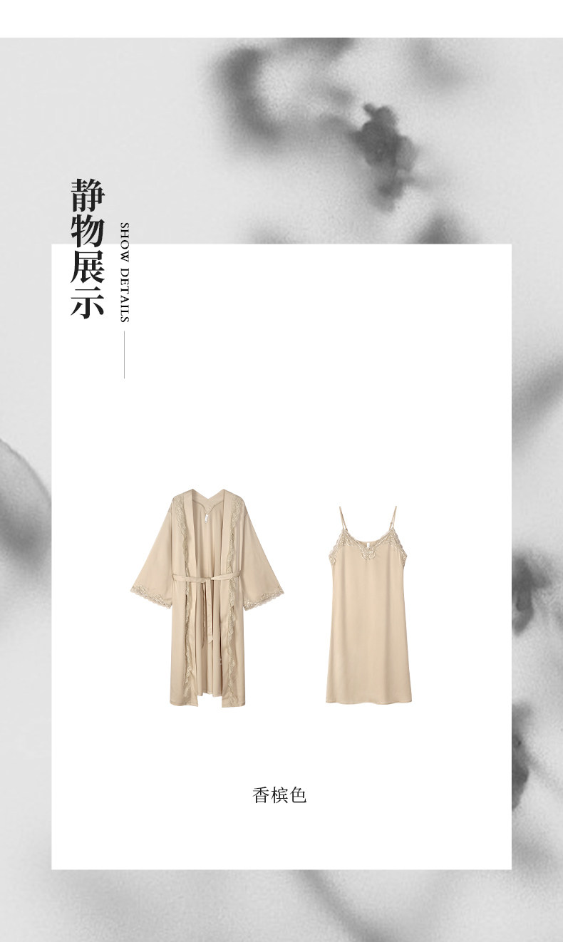 同语睡袍女春秋冬季冰丝长袖家居服睡裙晨袍浴袍薄新款睡衣女套装