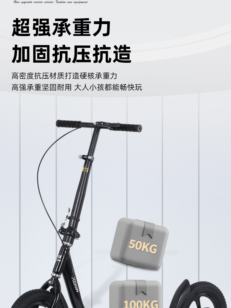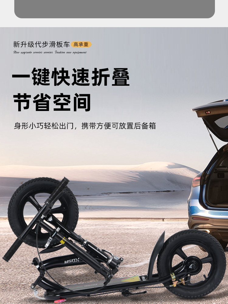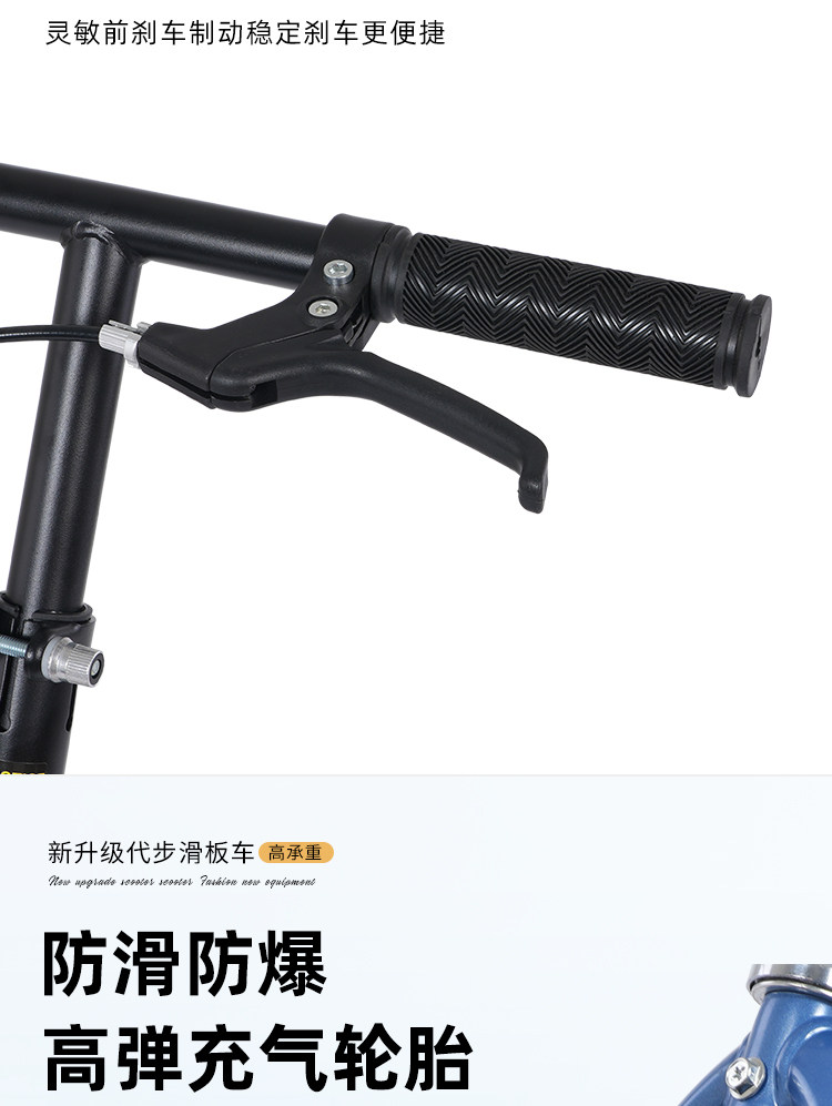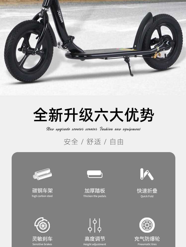 Children's Scooter for Ages 6-12, Suitable for Older Children and Students, Campus Scooter, Inflatable Two-Wheeled Portable Folding Foot Scooter
