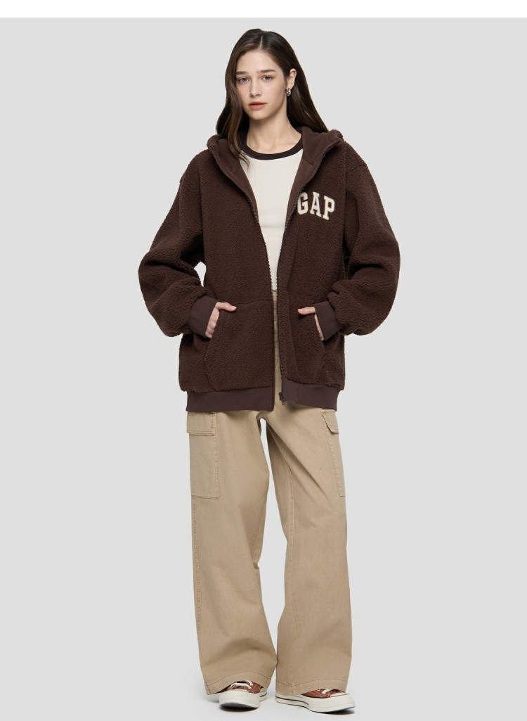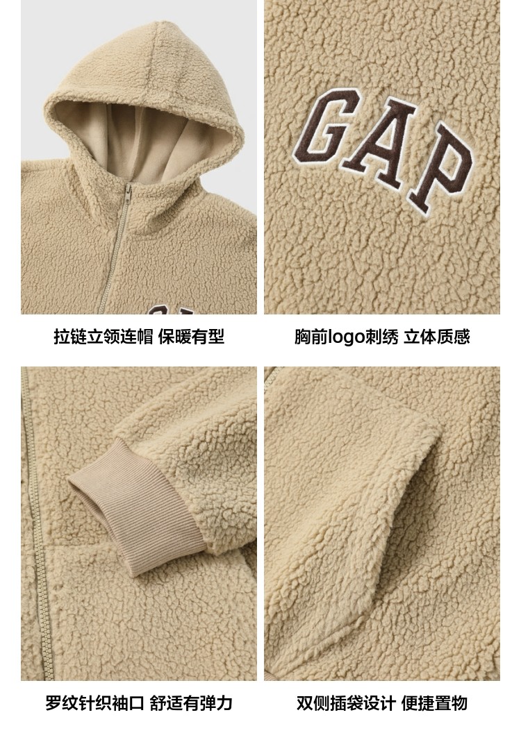 Gap Herren- und Damen-Kapuzenpullover 2025 Frühling und Herbst mit Sherpa-Reißverschluss und Logo-Imitation 786507