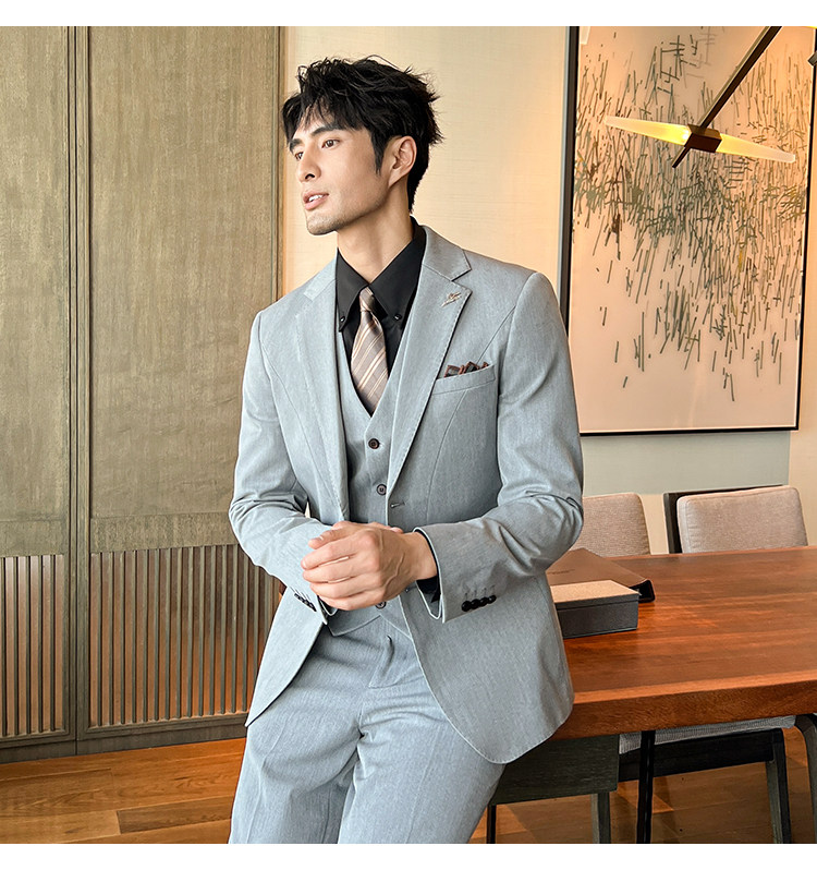 西装男结婚礼服新郎西服套装男士职业正装商务休闲韩版修身三件套