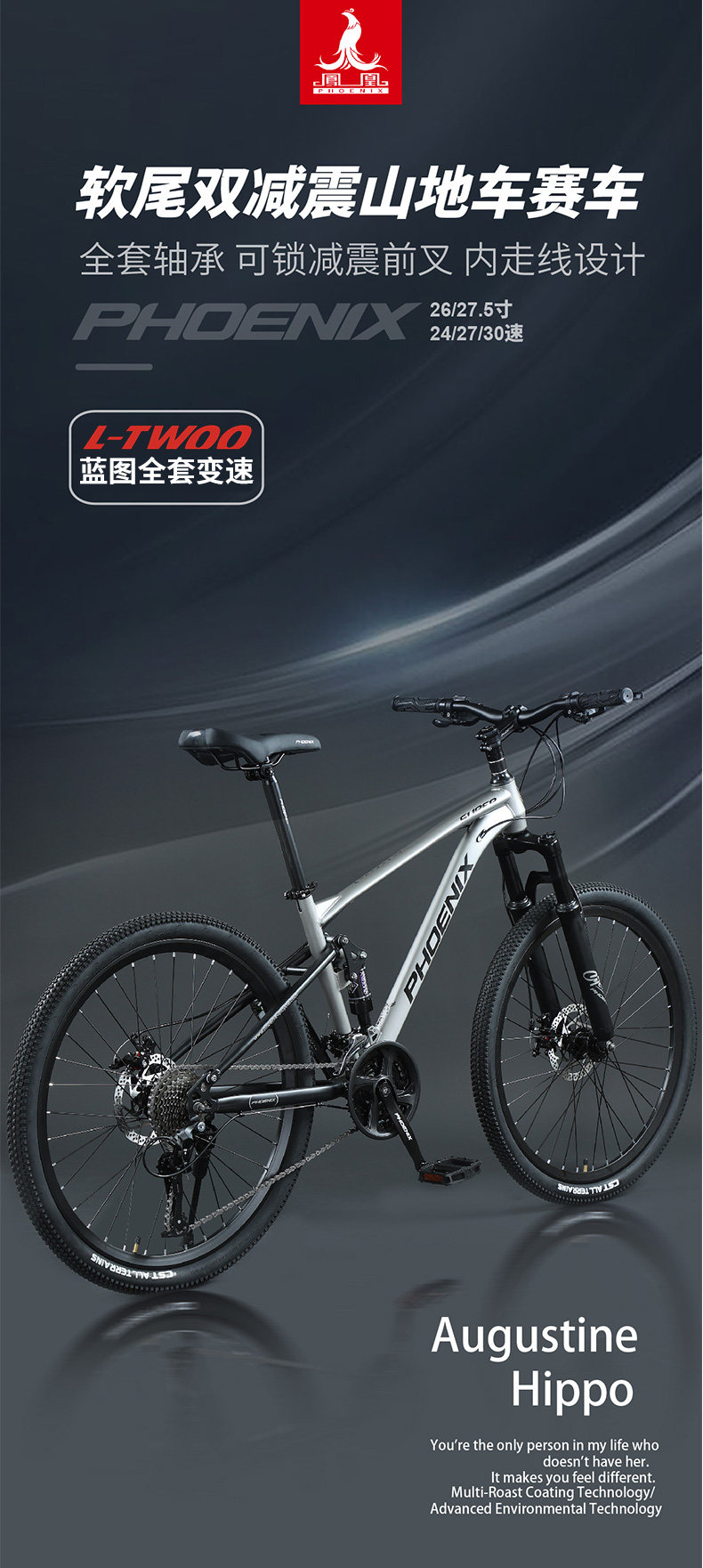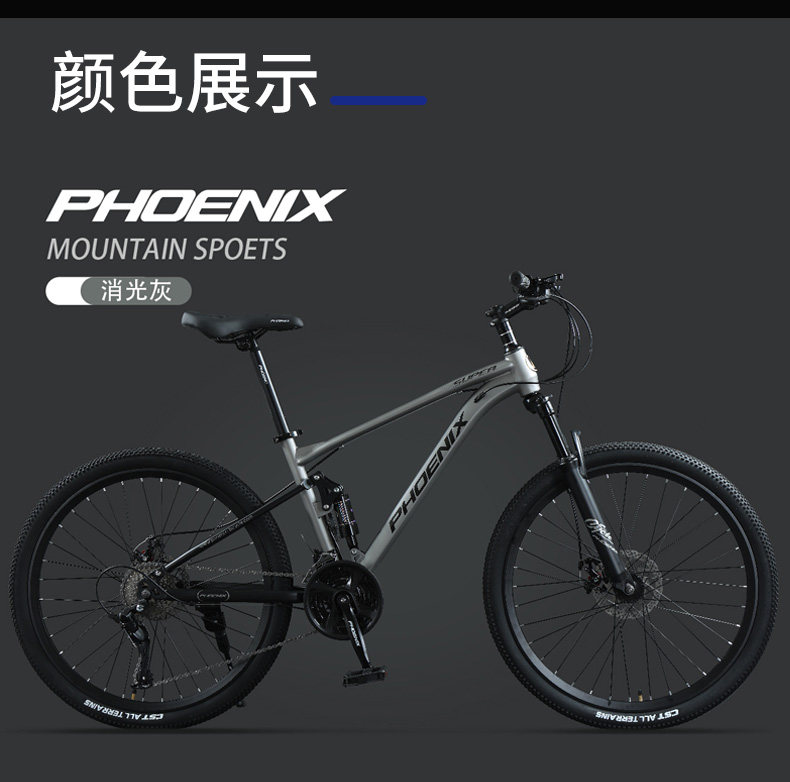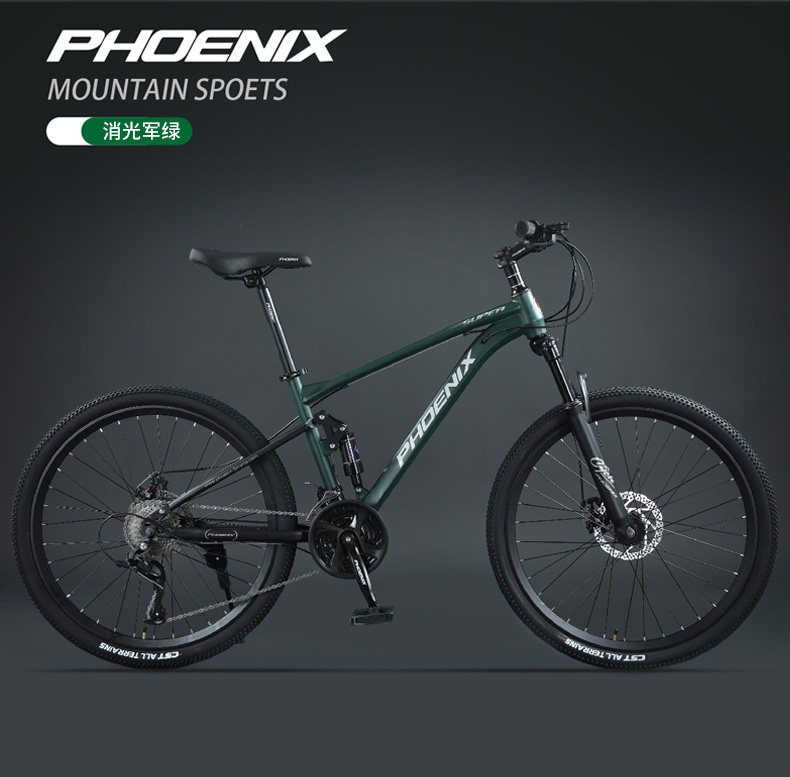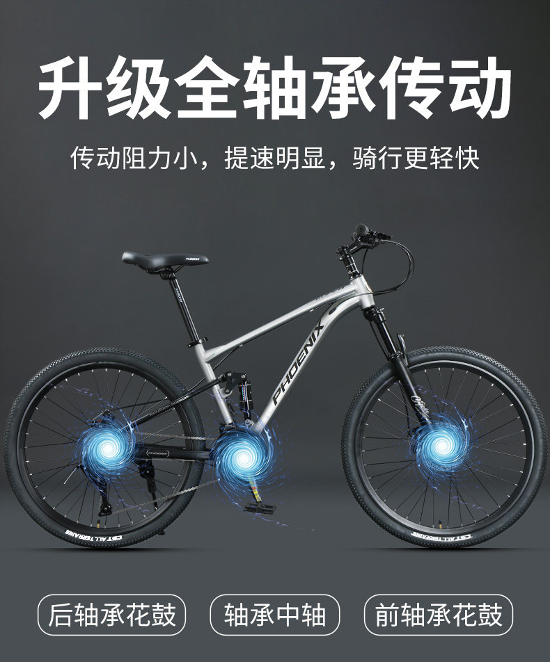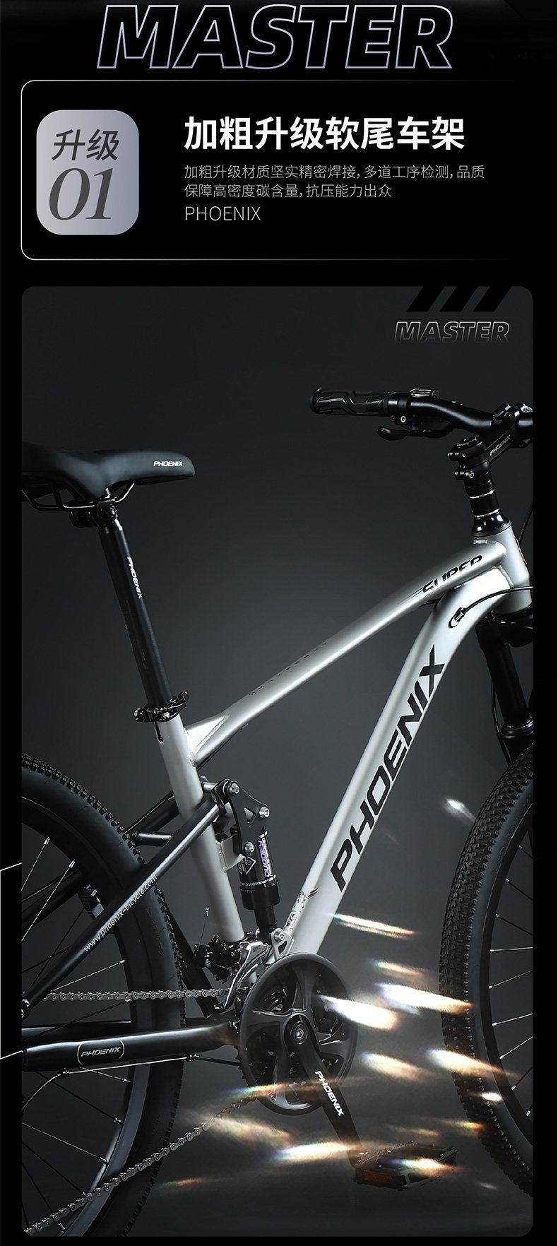凤凰猛士软尾双减震山地自行车成人男女款变速越野青少年单车赛车