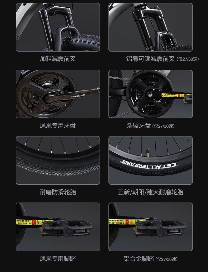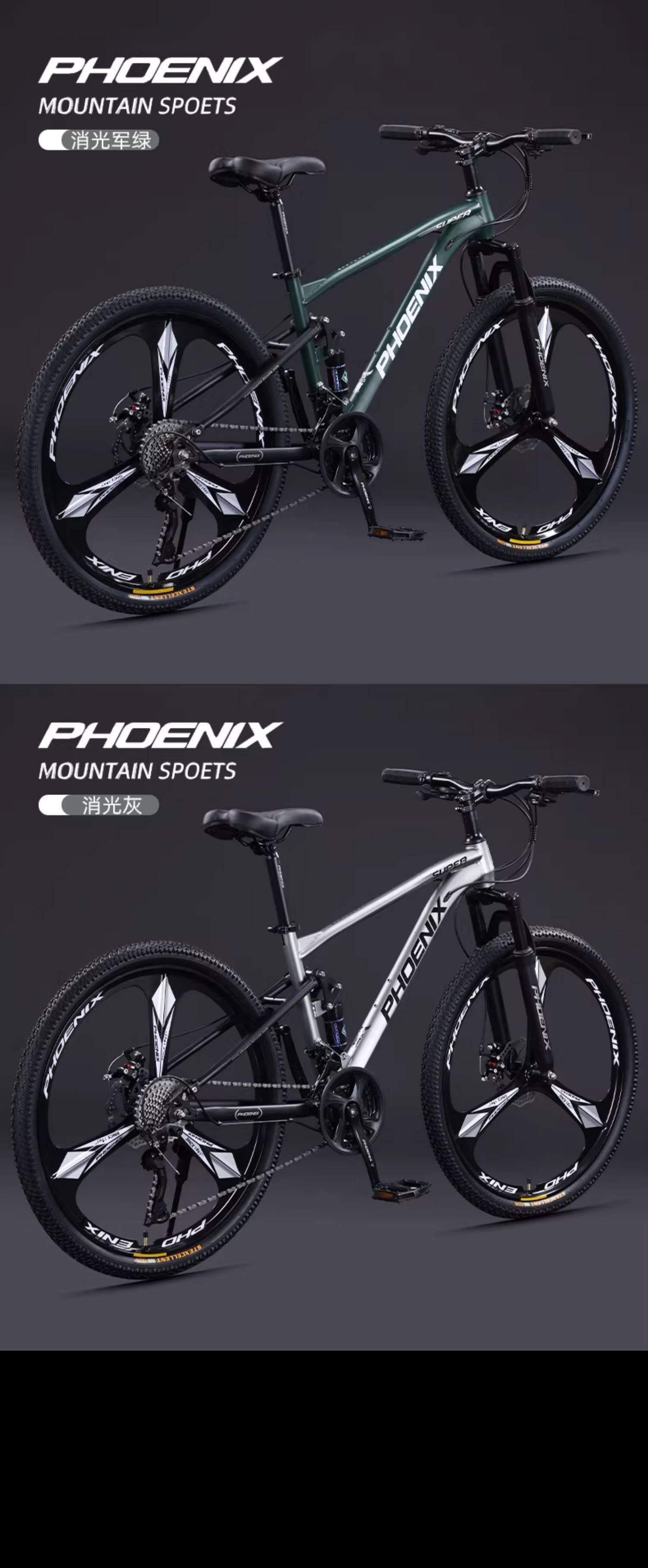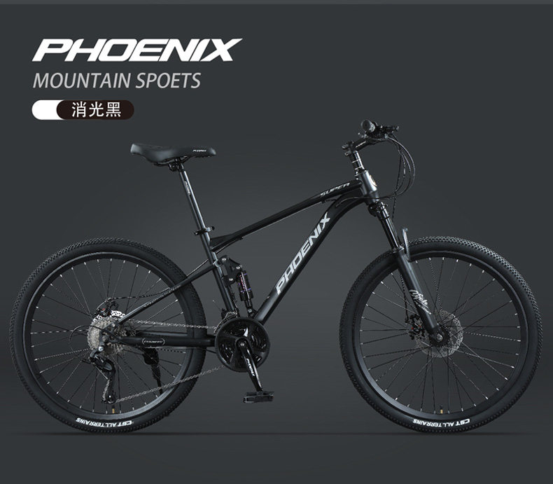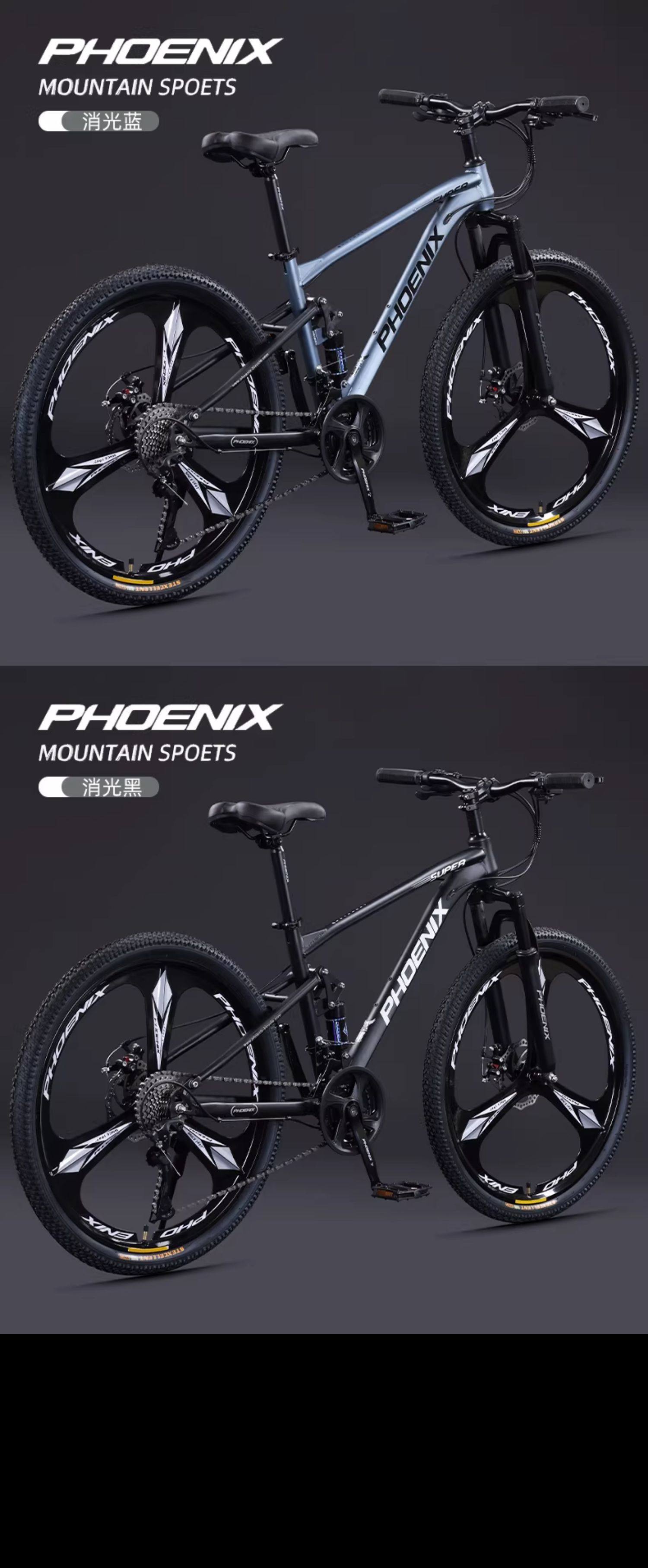 凤凰猛士软尾双减震山地自行车成人男女款变速越野青少年单车赛车