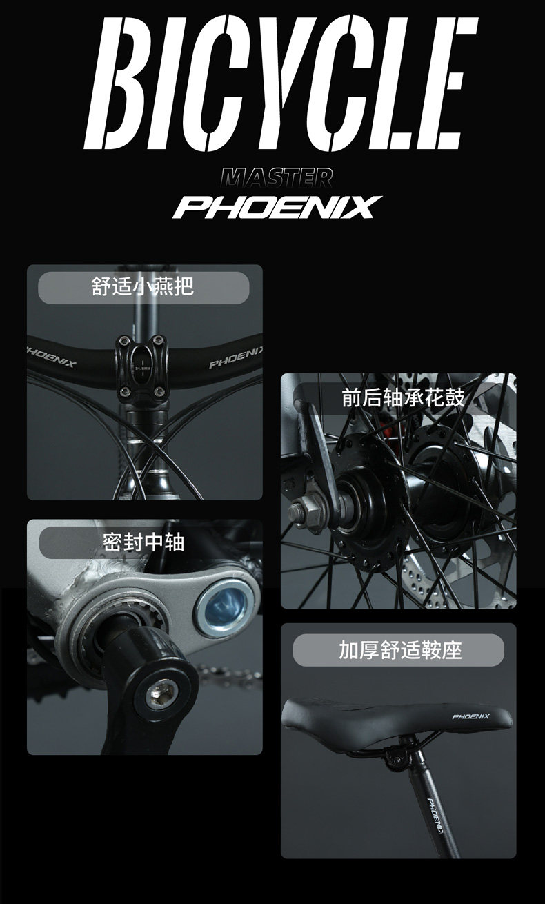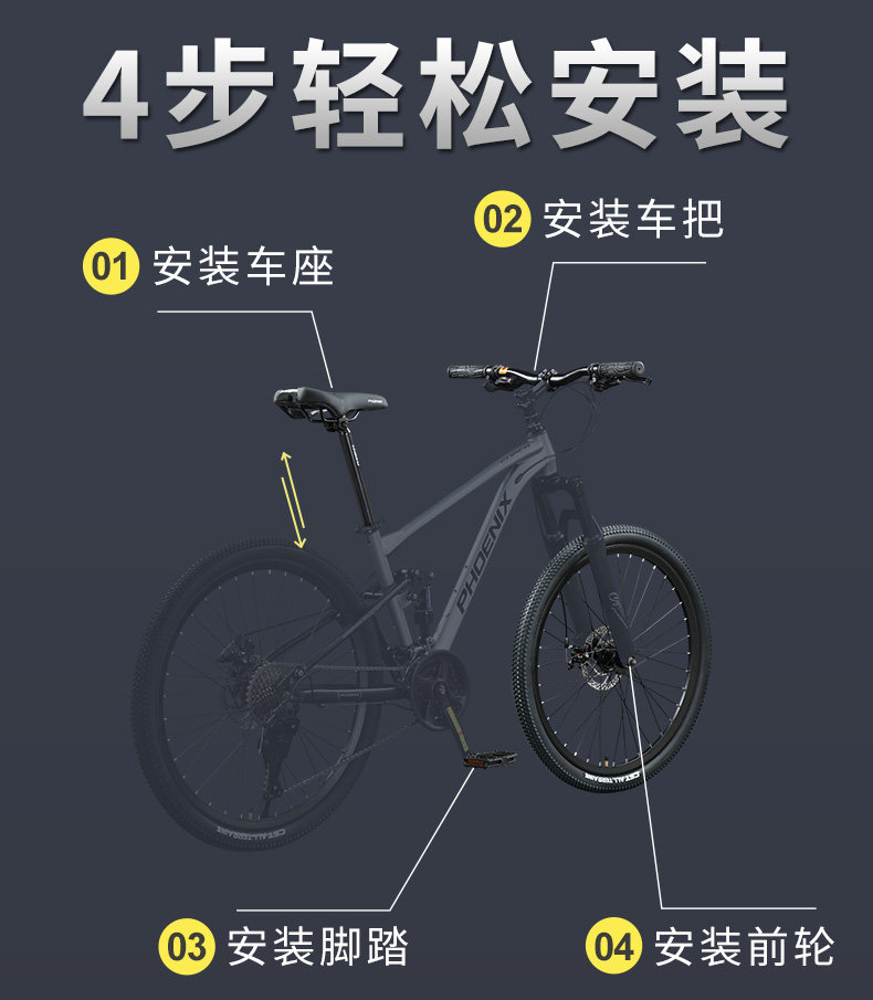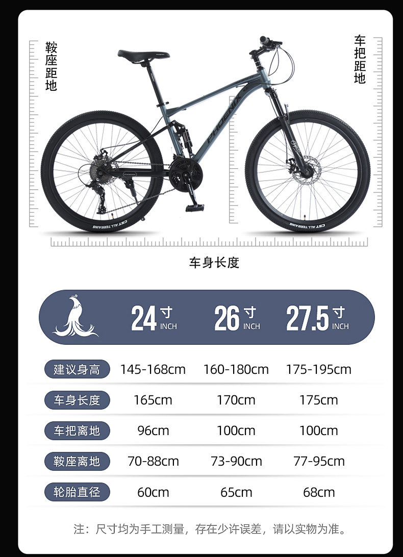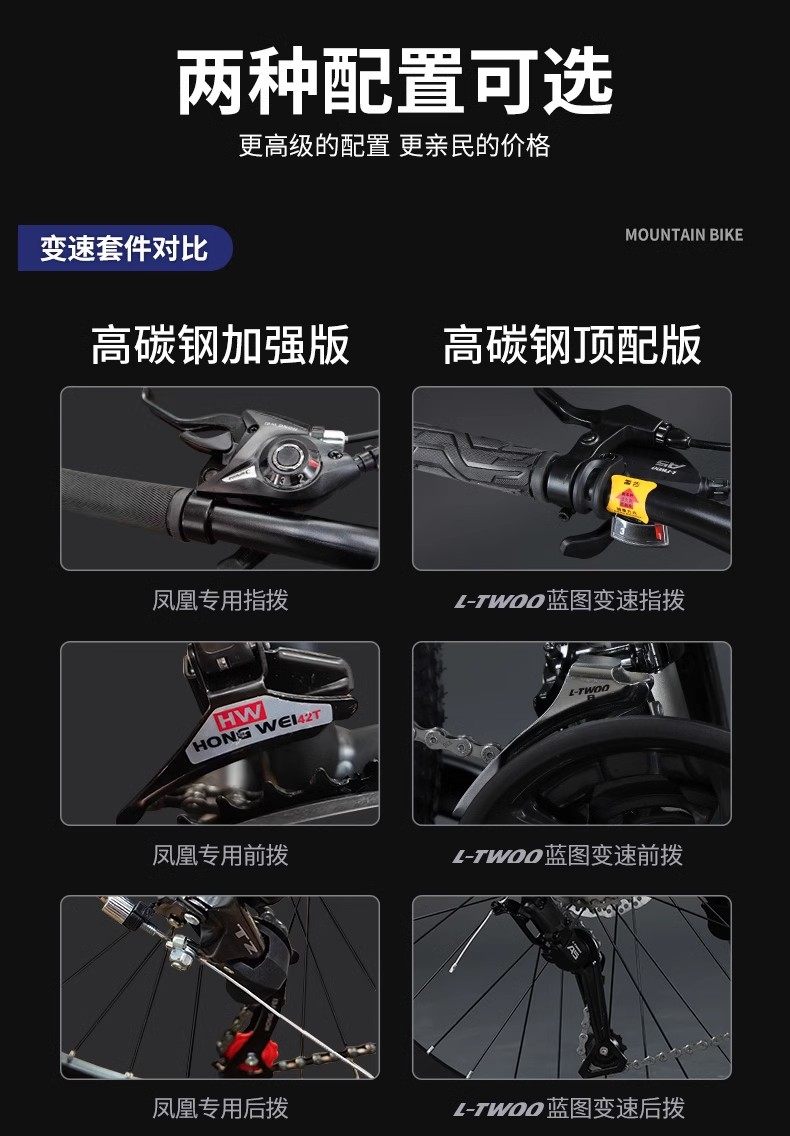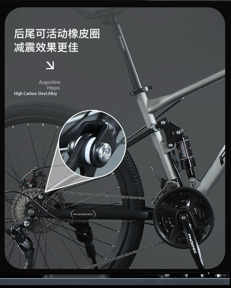 凤凰猛士软尾双减震山地自行车成人男女款变速越野青少年单车赛车