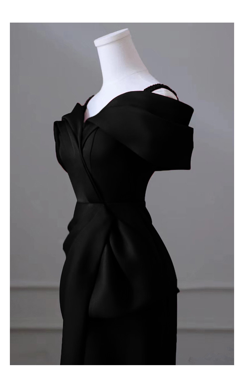 One-Shoulder Black Evening Dress 2025 New Style Banquet High-End Fishtail Dress for Women Light Luxury Niche Host High-End