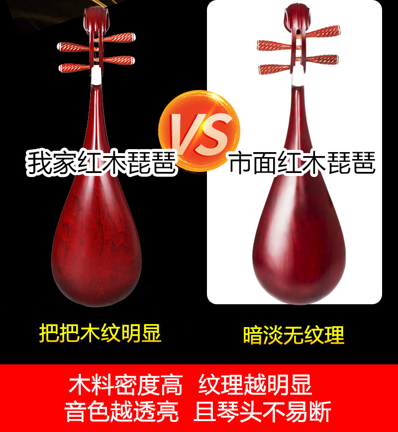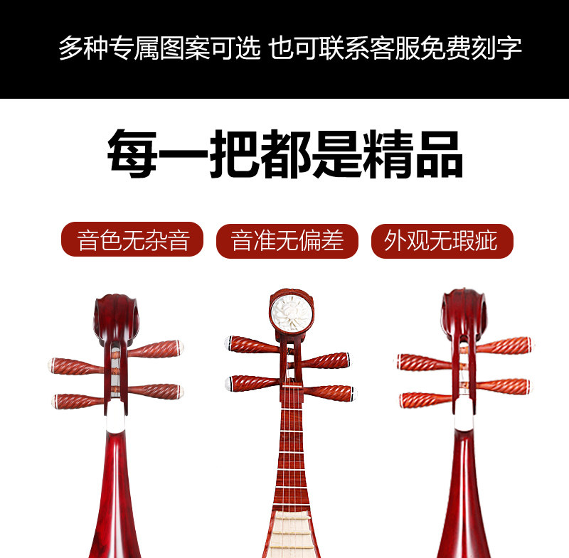 Factory Direct Sales Rosewood Beginner Pipa for Children and Adults, Professional Grade Examination Instrument, Medium-Sized Instrument