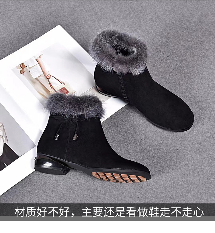 Mink Fur Thick-Heeled Short Boots for Women, Genuine Leather, Korean Style, Matte Women's Boots, Versatile, Fleece-Lined Fashion Boots, Soft-Soled Round-Toe Furry Boots