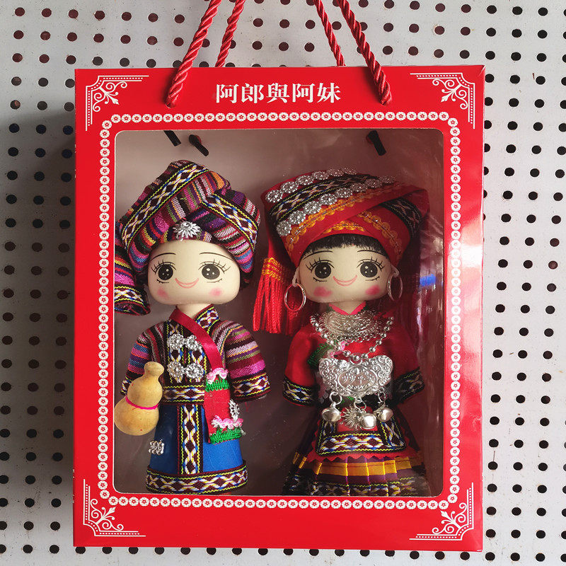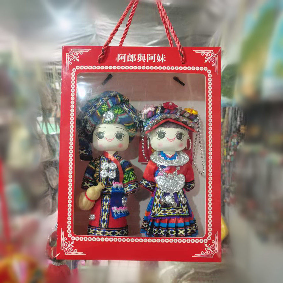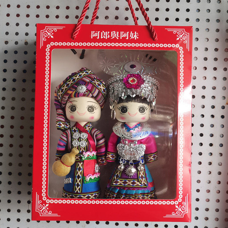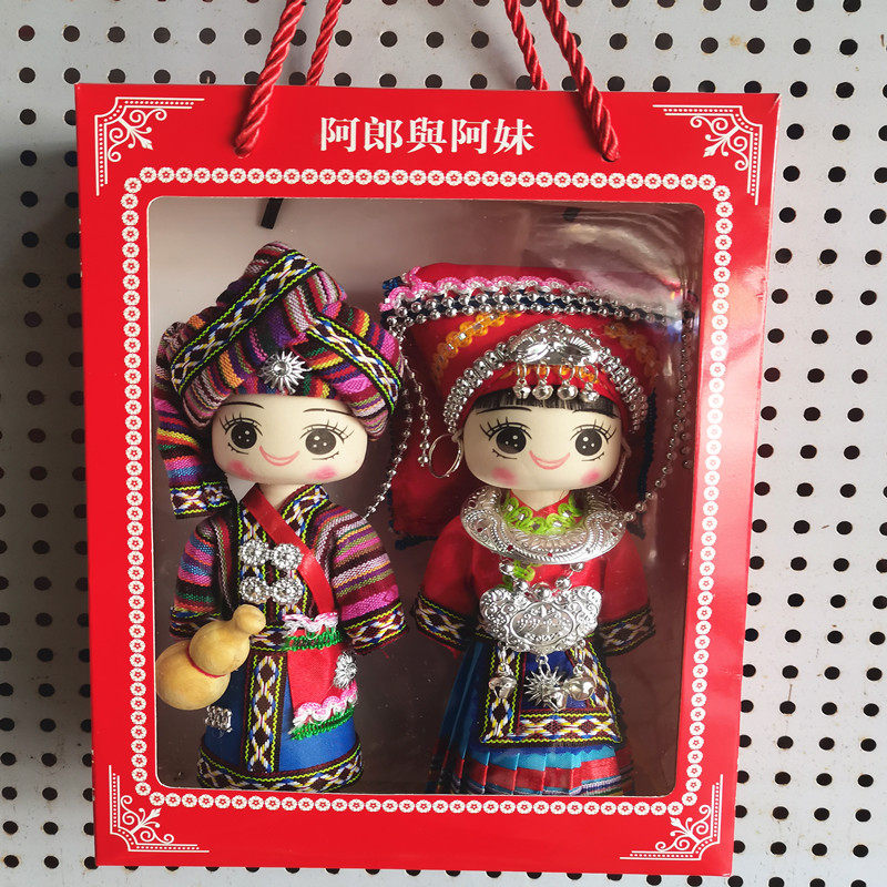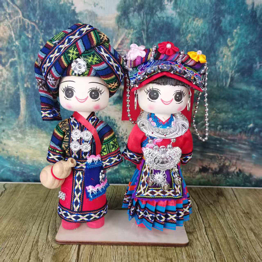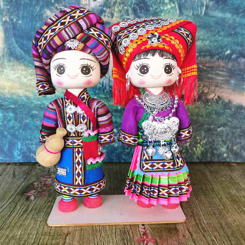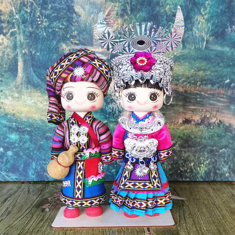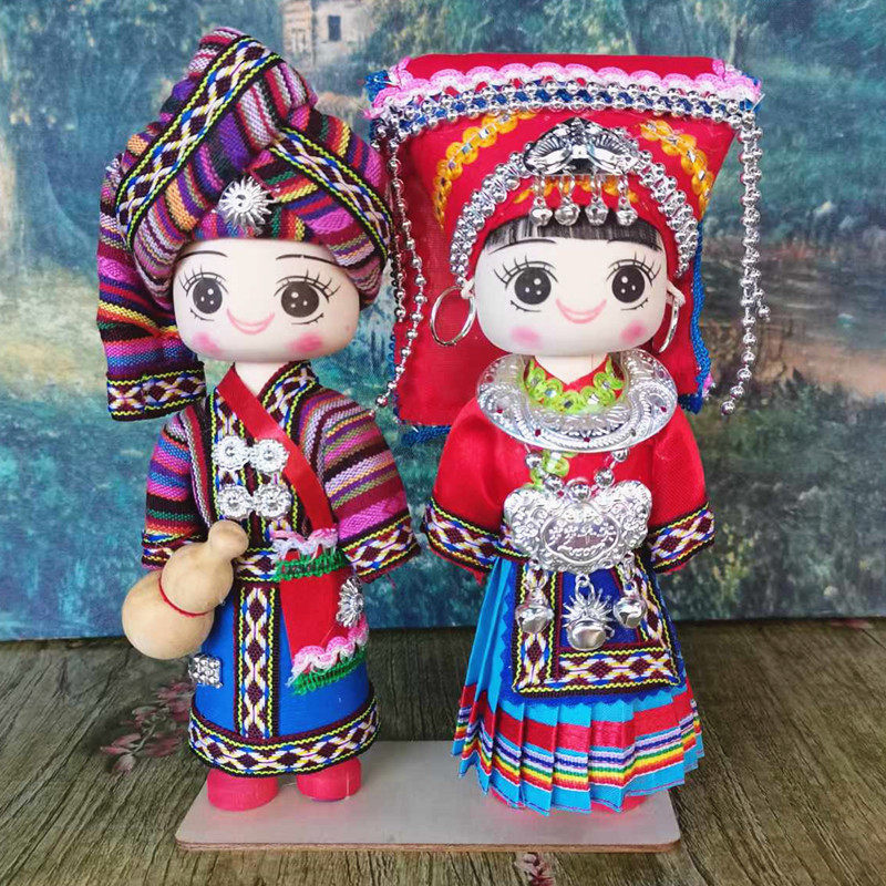 少数民族娃娃手工木偶娃男女对娃云南广西贵州特色玩偶旅游纪念品