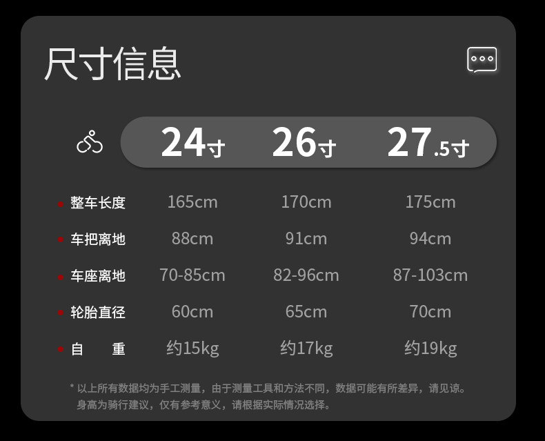 轮径尺寸 24寸,27.5寸,26寸