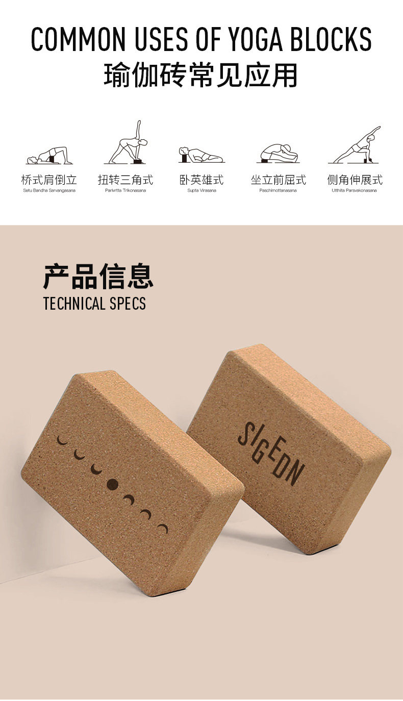 SIGEDN软木瑜伽砖高密度实木环保艾扬格砖块专业抗压专用辅助工具