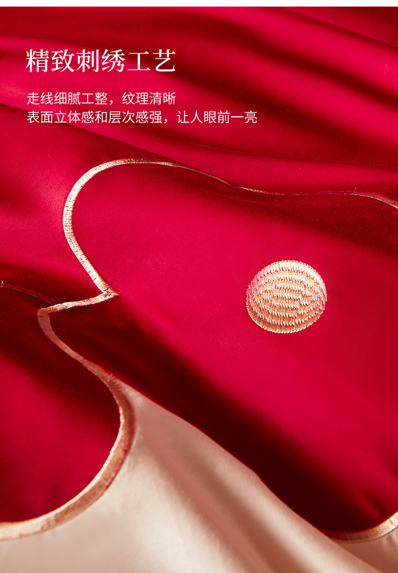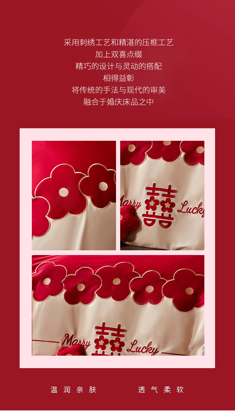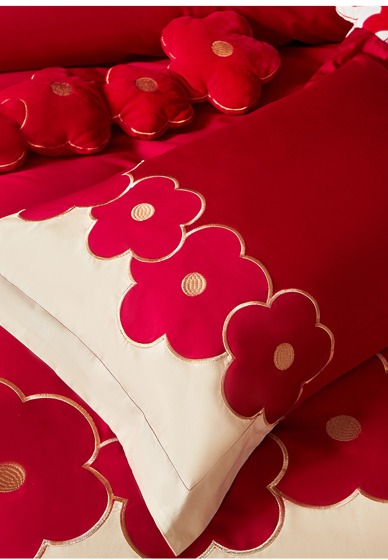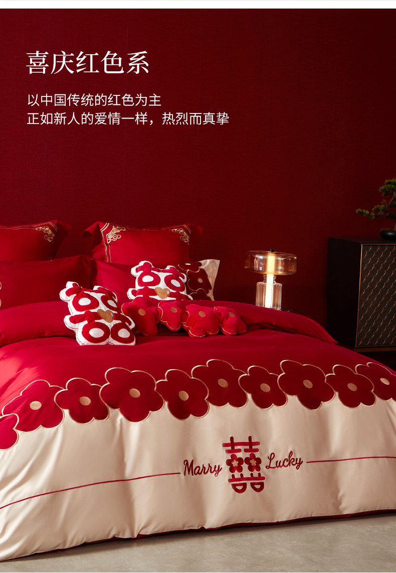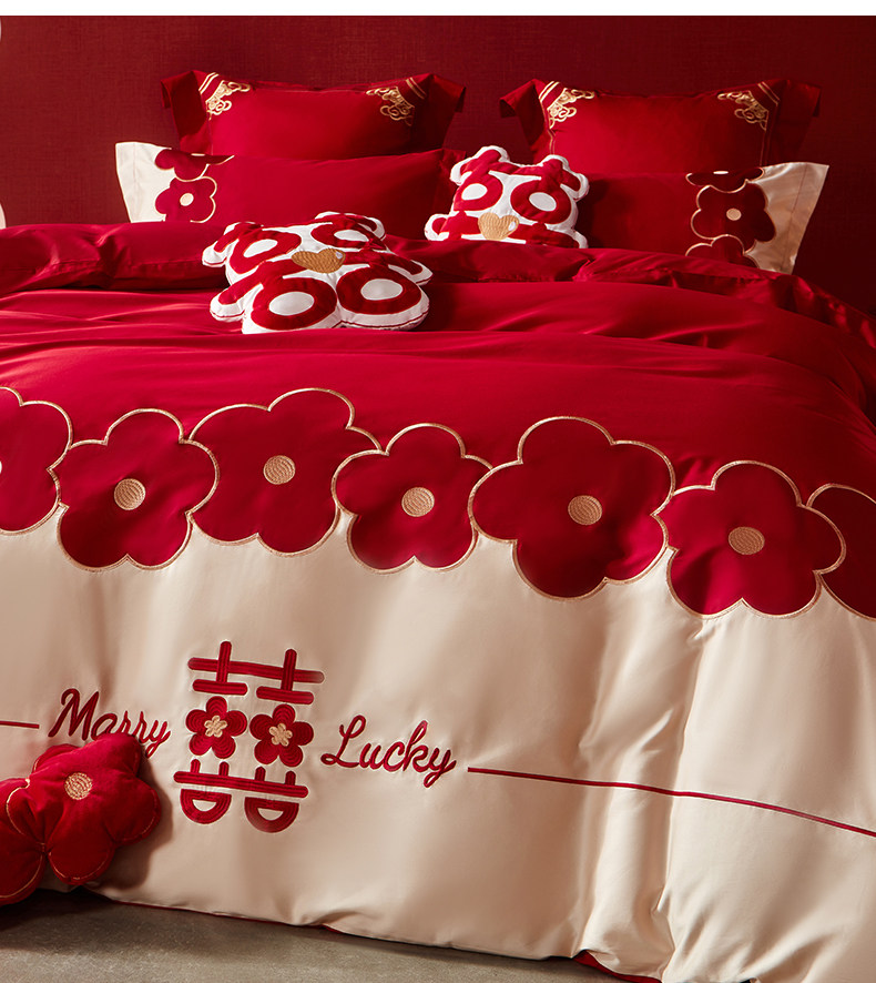Aiwai Wedding Pure Cotton Four-Piece Wedding Set Fashionable Embroidered Red Quilt All-Cotton New Wedding Bedding