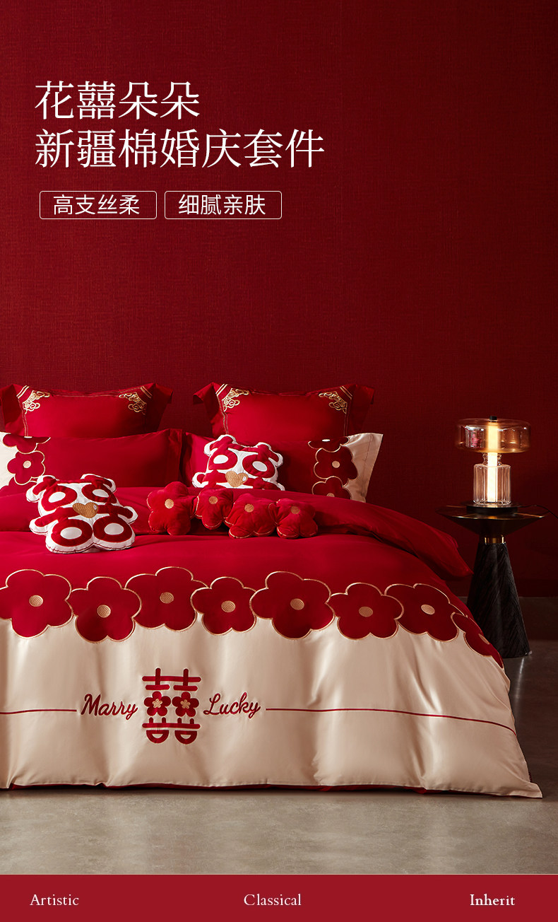 Color Classification Romantic Wedding Set * Blooming Flowers (4-Piece Bed Sheet Set),[Package One]Huaxi Duo Duo Four-Piece Bedding Set + Zhen Ya Quilt (3-Core),[Package 2]Floral Abundance Four-Piece Bedding Set + 3-Core Cotton Quilt