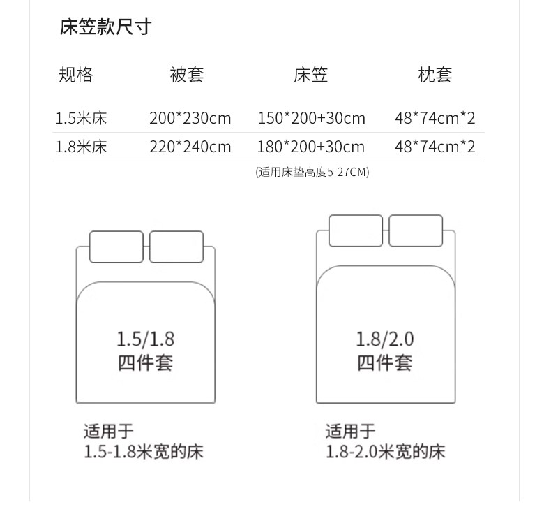 Applicable Bed Size Four-Piece Set: Suitable for 1.5/1.8m Bed[Quilt Cover 200*230],Four-Piece Set: Suitable for 1.8/2.0m Bed[Quilt Cover 220*240]