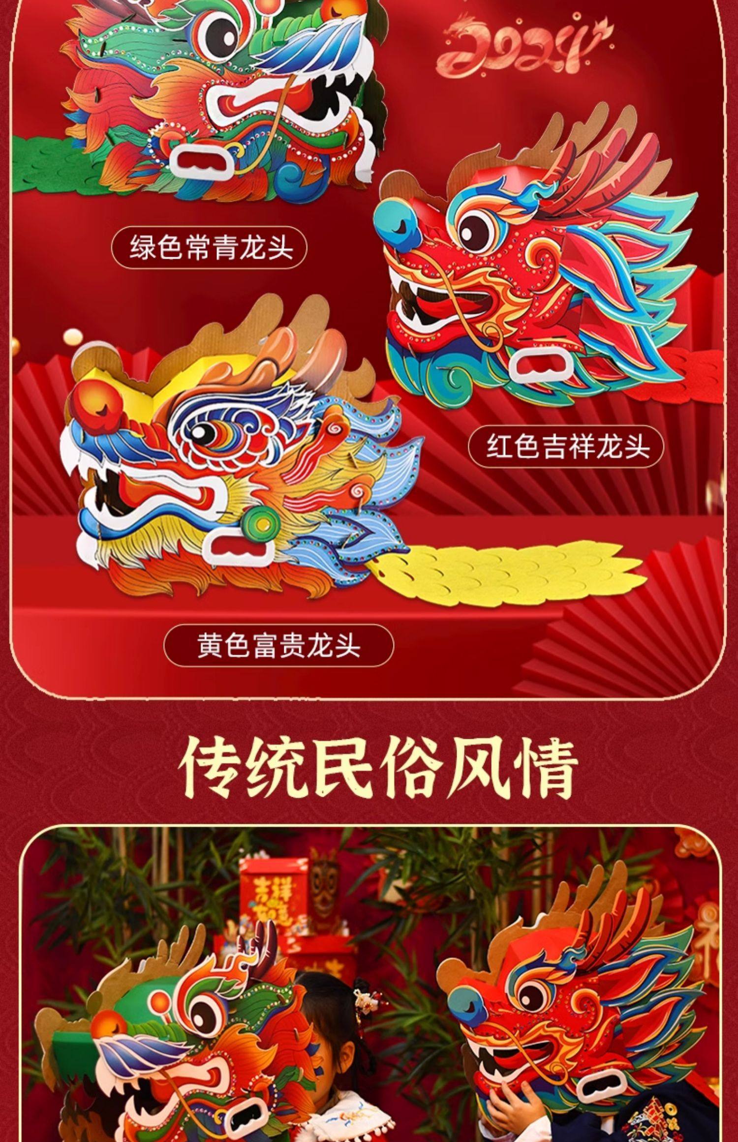 Новогодний декор в китайском стиле «Голова дракона» ручной работы для детей, реквизит для выступлений, занятий в детском саду и спортивных мероприятий (Год Лошади)