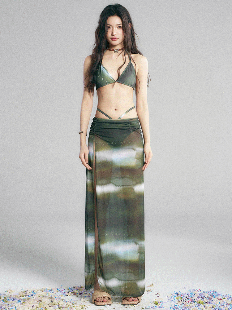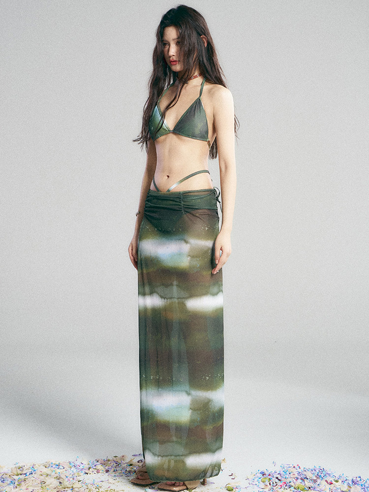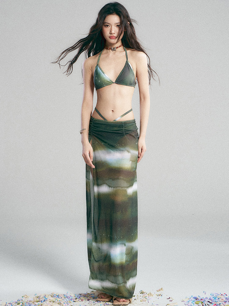 Pinkup Pink Rebel neuer Bikini, Gazerock, Strandurlaub, sexy Persönlichkeit, dreiteiliger Hot-Spring-Badeanzug für Frauen