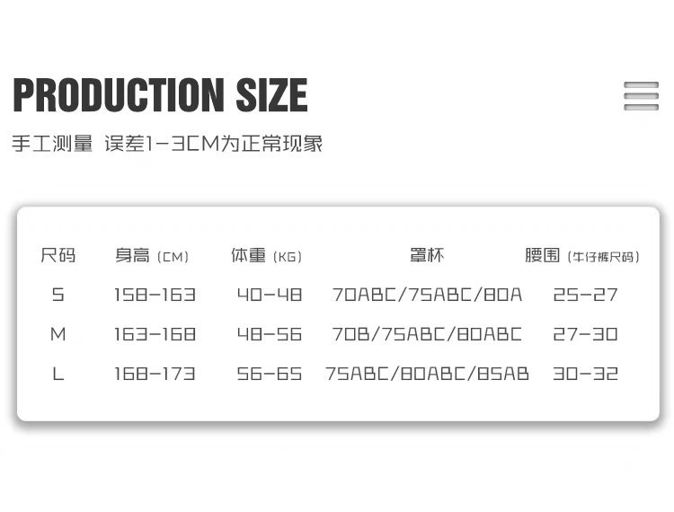 China (cm) 160-165/84-86 165-170 / 88-90 167-172 / 92-96 168-173 / 98-102 170-176 / 106-110