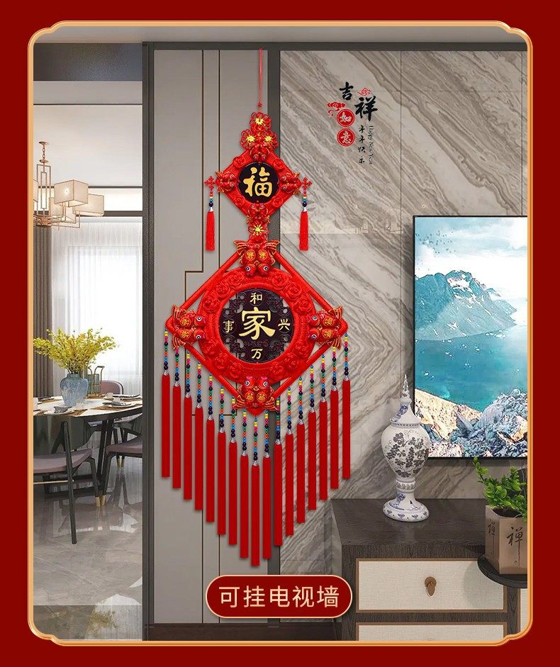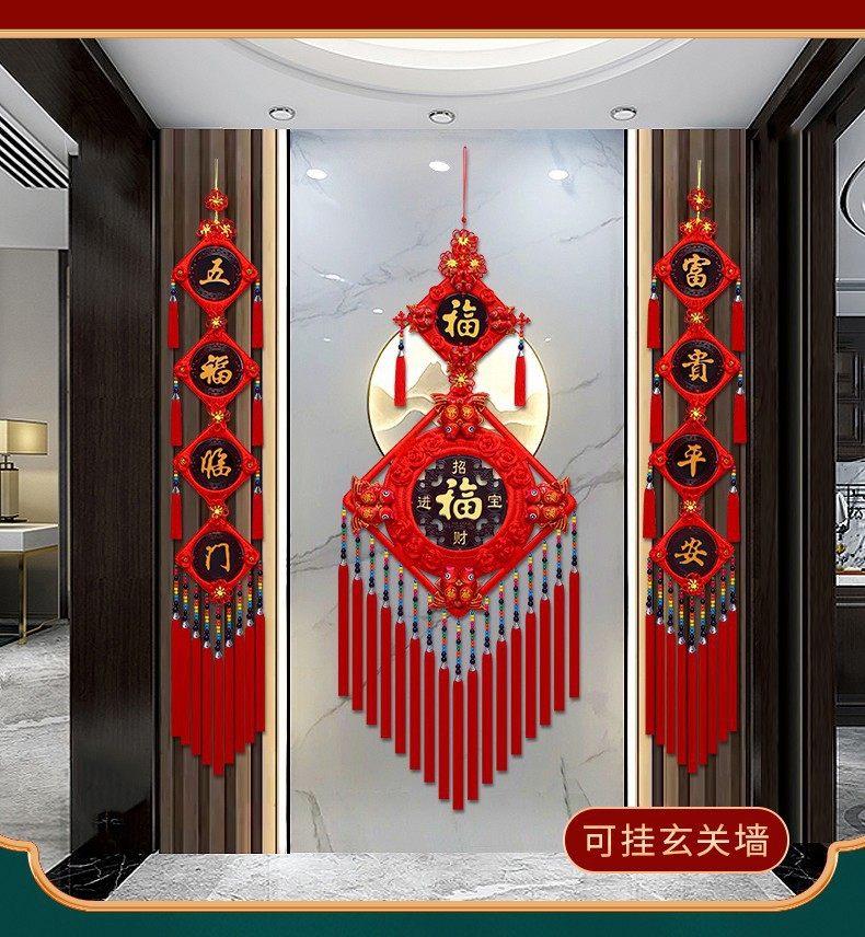 高档中国结挂件客厅大号桃木福字中国结玄关乔迁平安结装饰墙壁挂