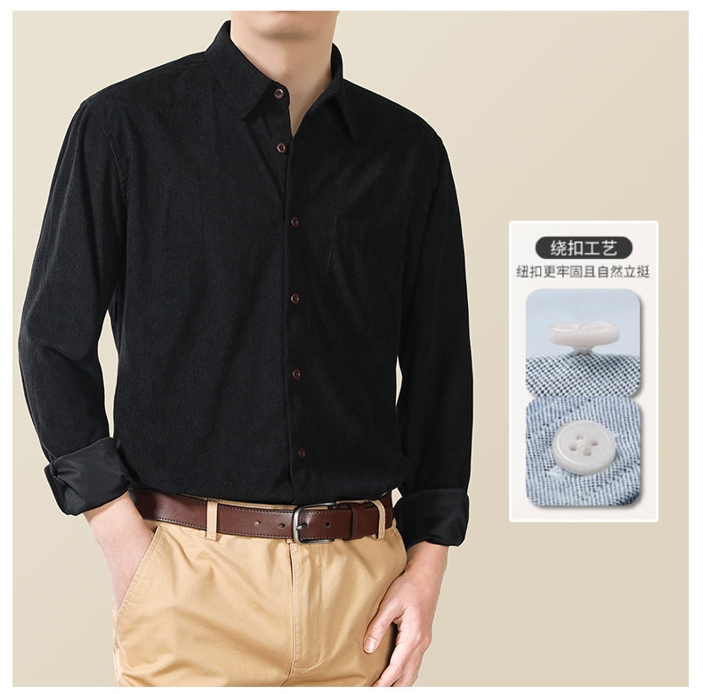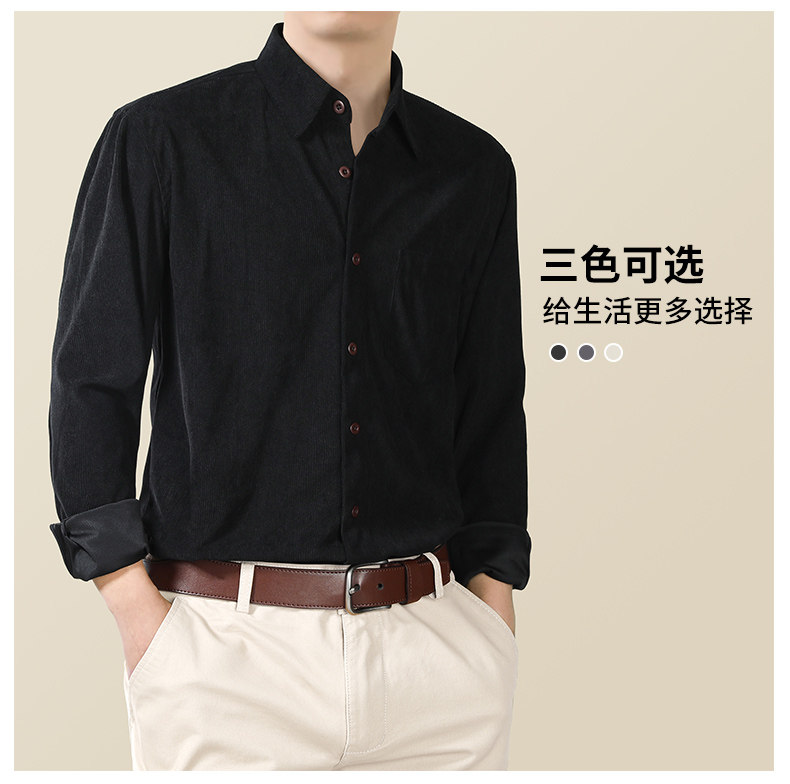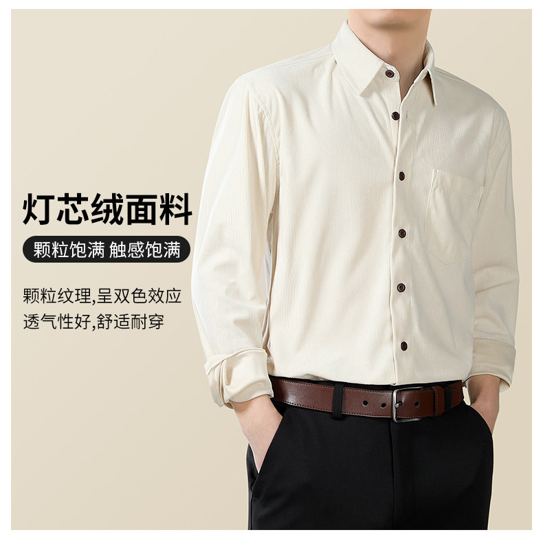 真维斯集团灯芯绒衬衫男春季休闲商务衬衣长袖纯色外套内搭打底寸