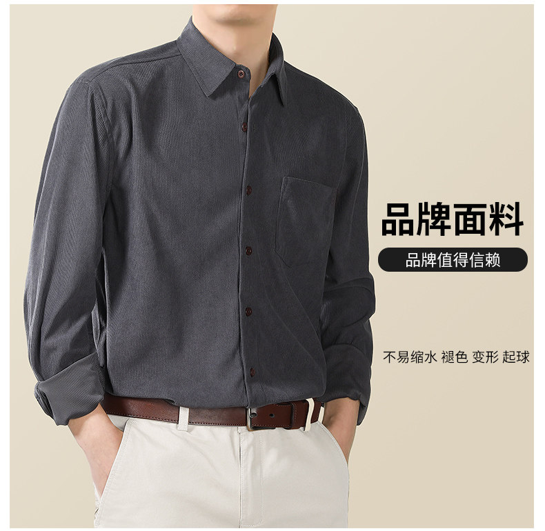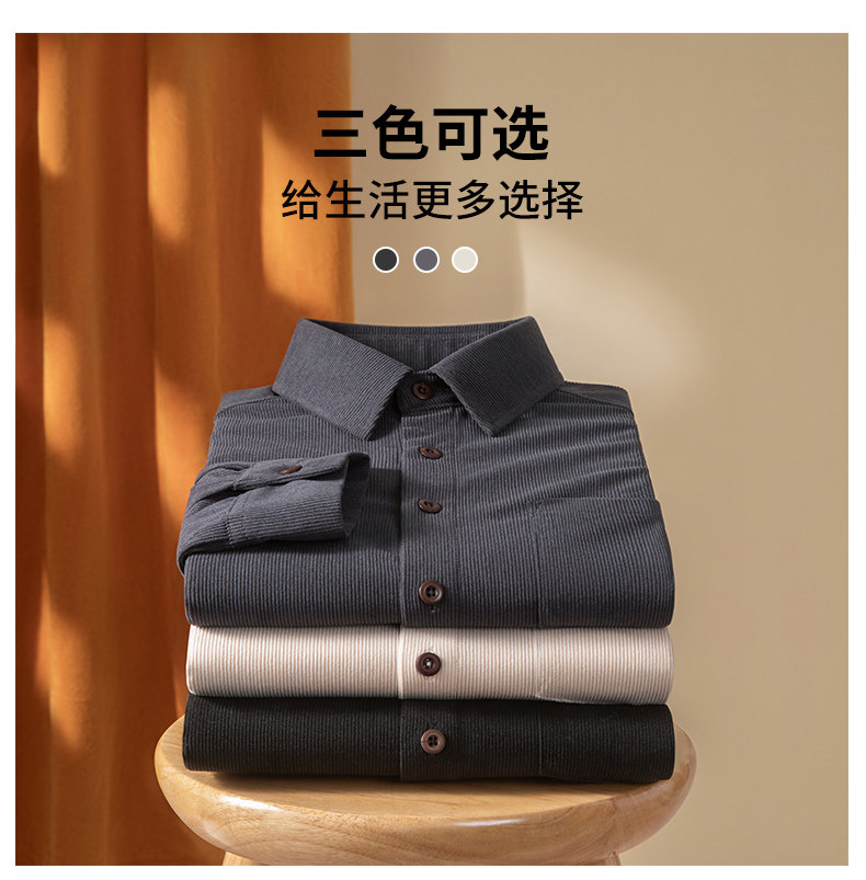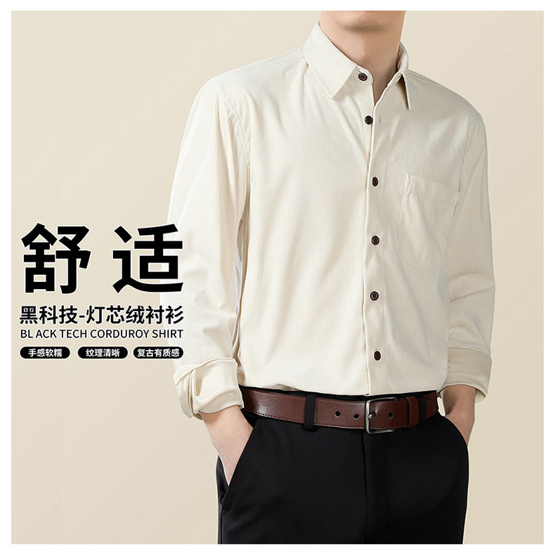 Jeanswest Group Corduroy Shirt for Men, Spring Casual Business Long-Sleeve Solid Color Shirt, Layering Base Layer