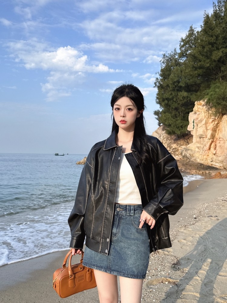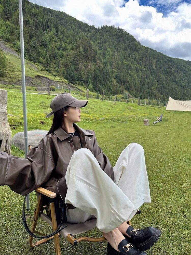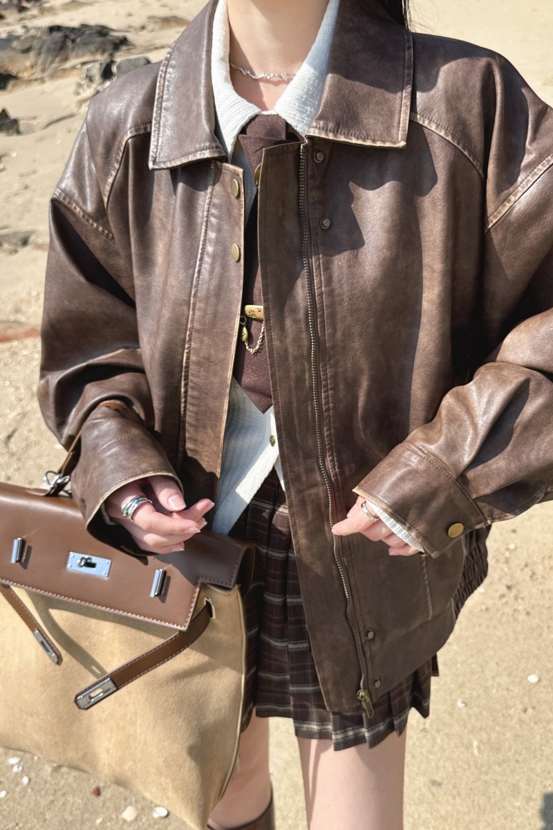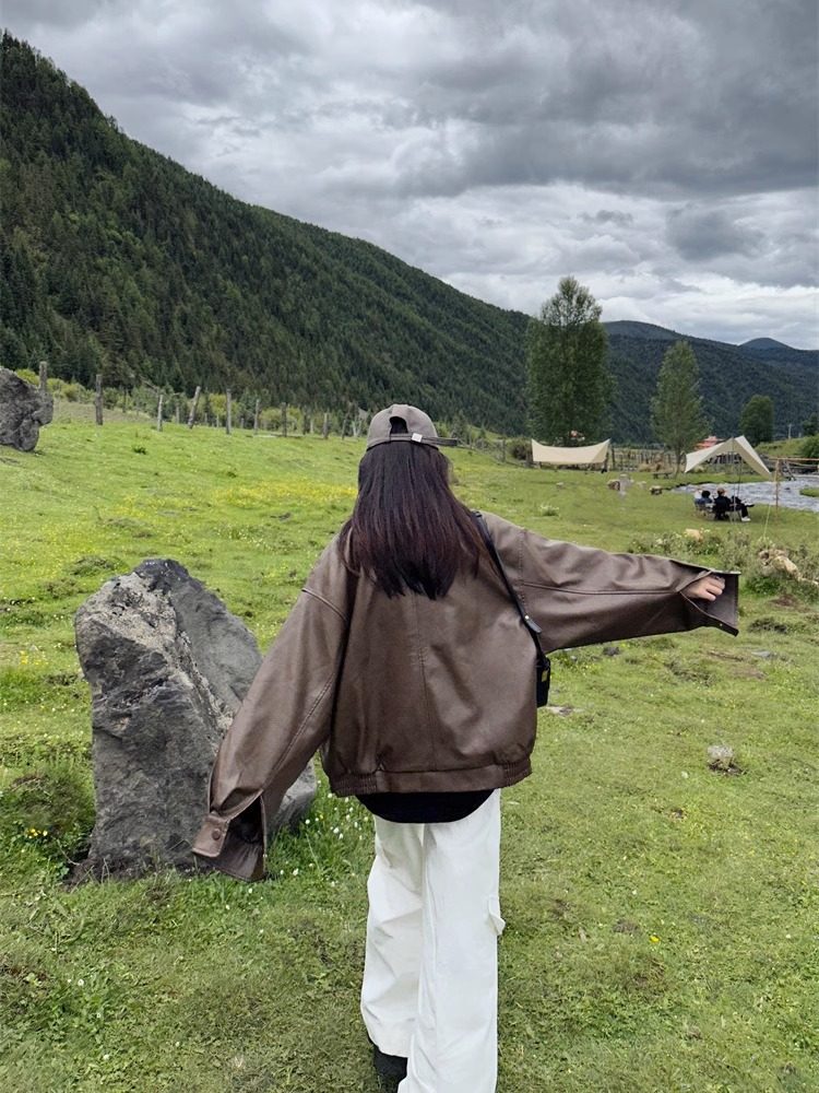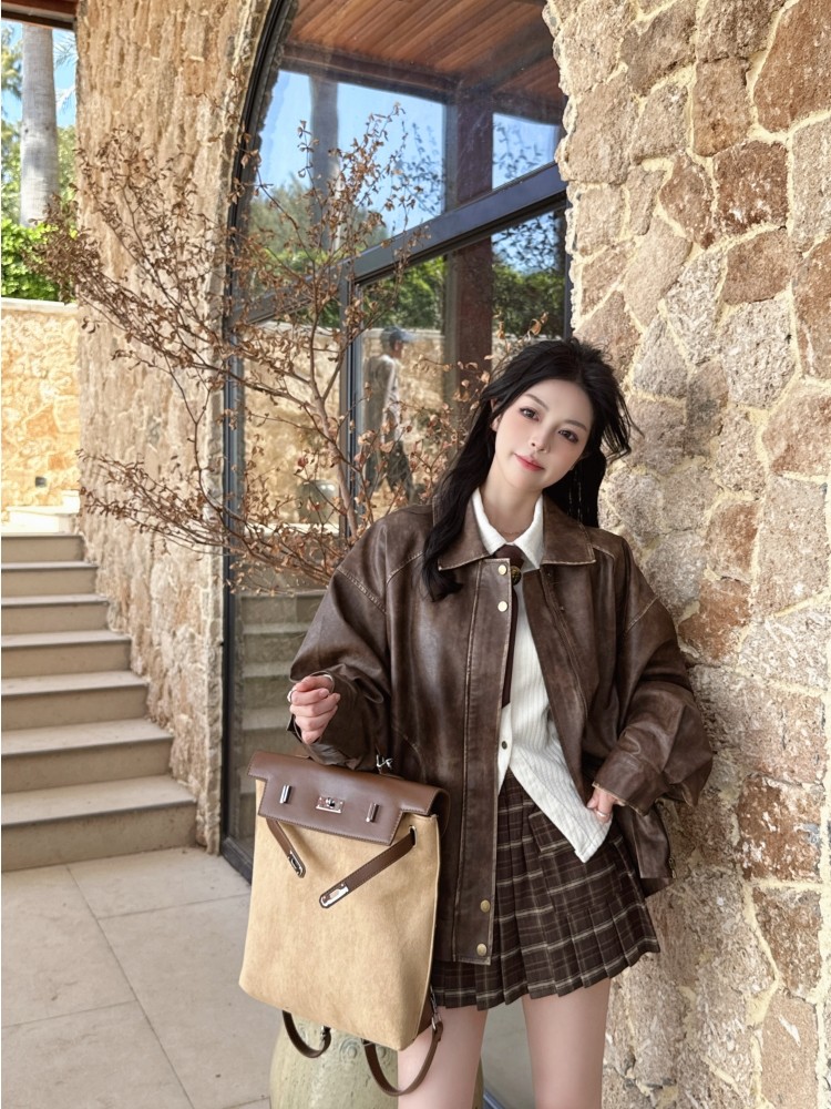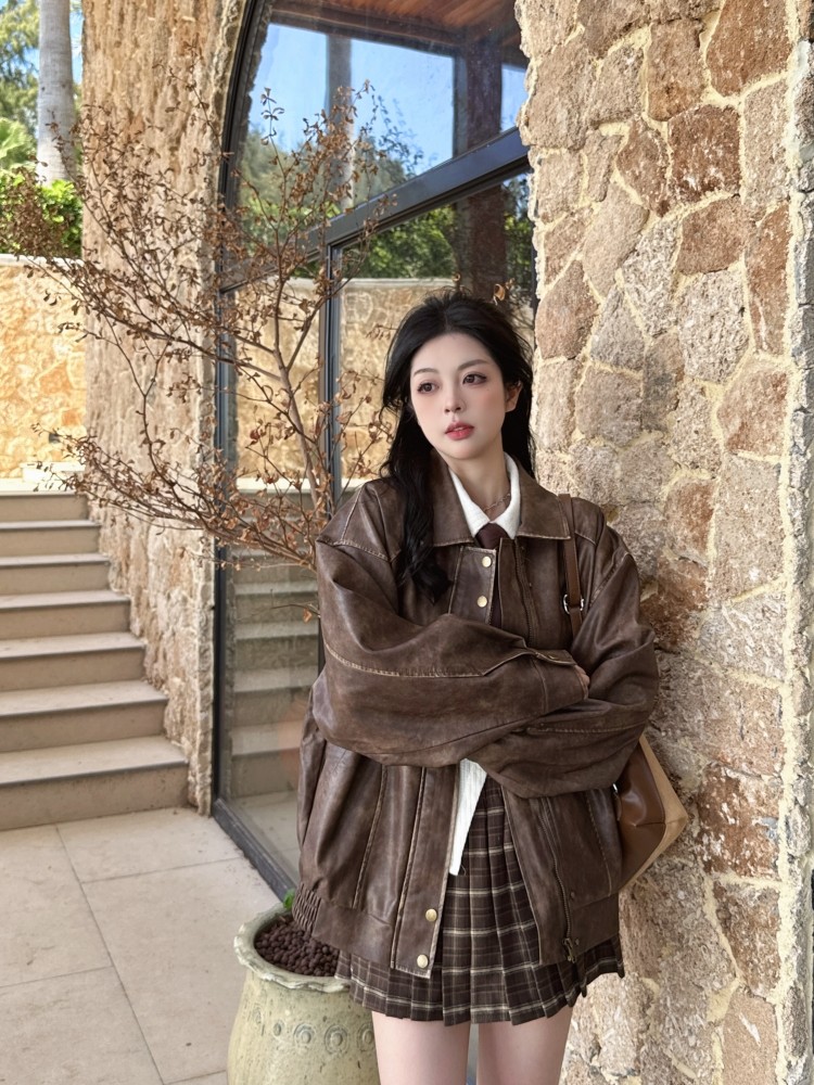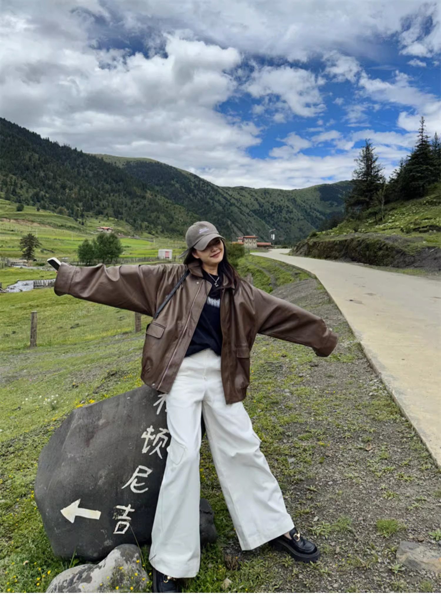 2025 chaqueta súper caliente chaqueta de cuero para mujer chaqueta de cuero marrón Maillard chaqueta de cuero americana chaqueta de alta gama para principios de otoño