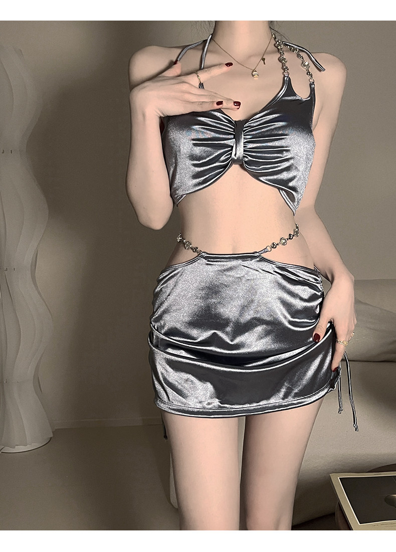 Beihao Long Satin Sexy Bikini Swimsuit for Women 2024 New Style Seaside Vacation Push-Up Two-Piece Bikini Set