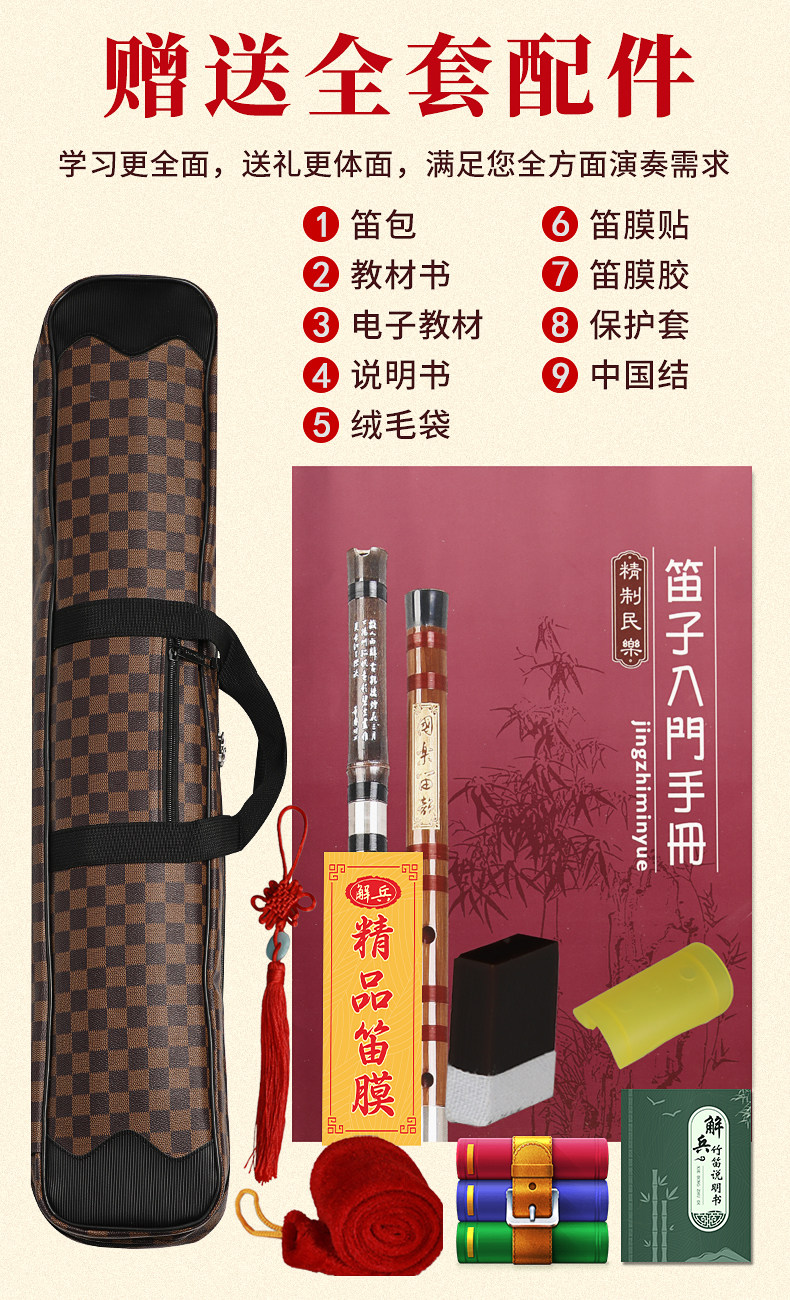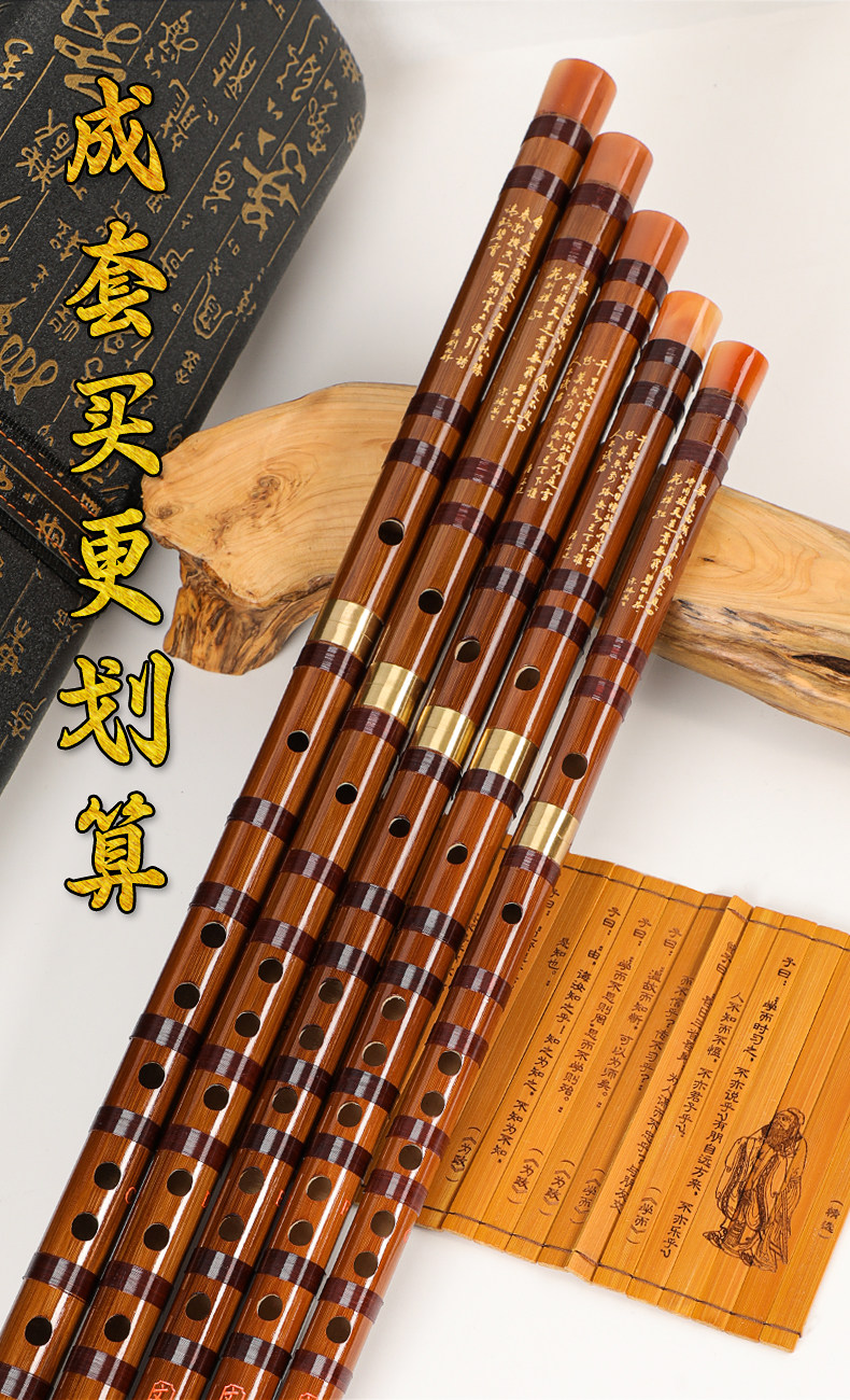 解兵新款古风专业演奏笛子入门苦竹笛子初学5支7支装学生成人套笛