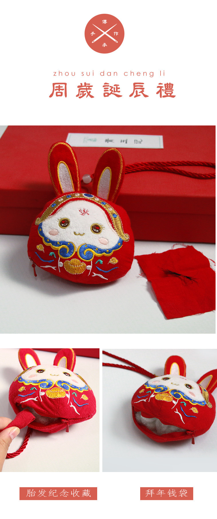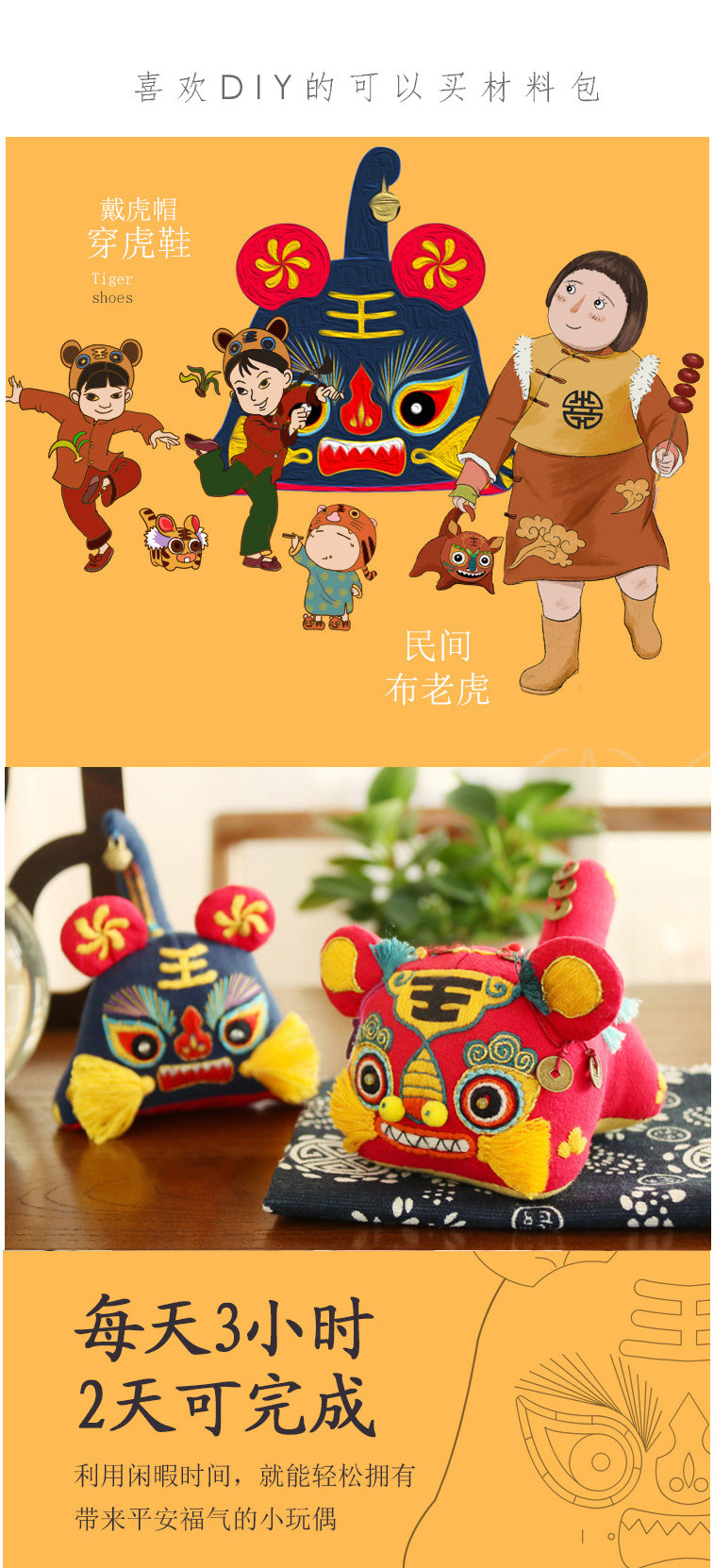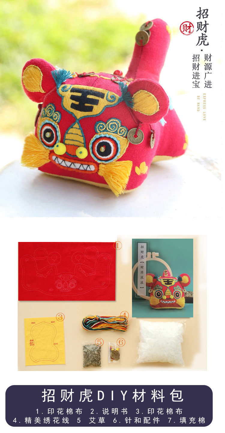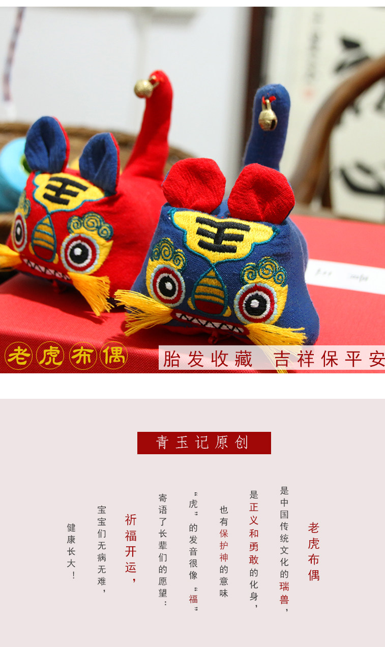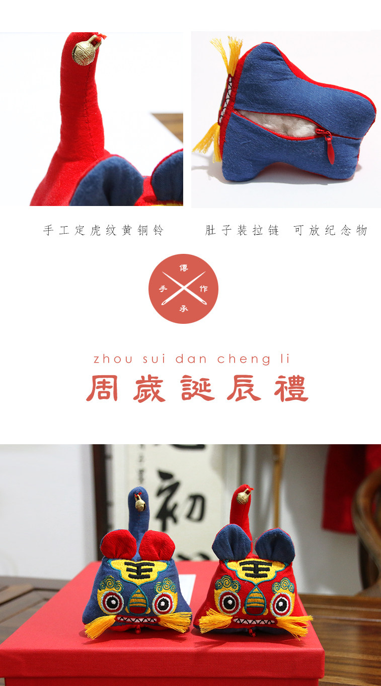Qingyuji Original Handmade Little Tiger Doll Baby Full Moon DIY Red Fabric Traditional Tiger Mascot Doll