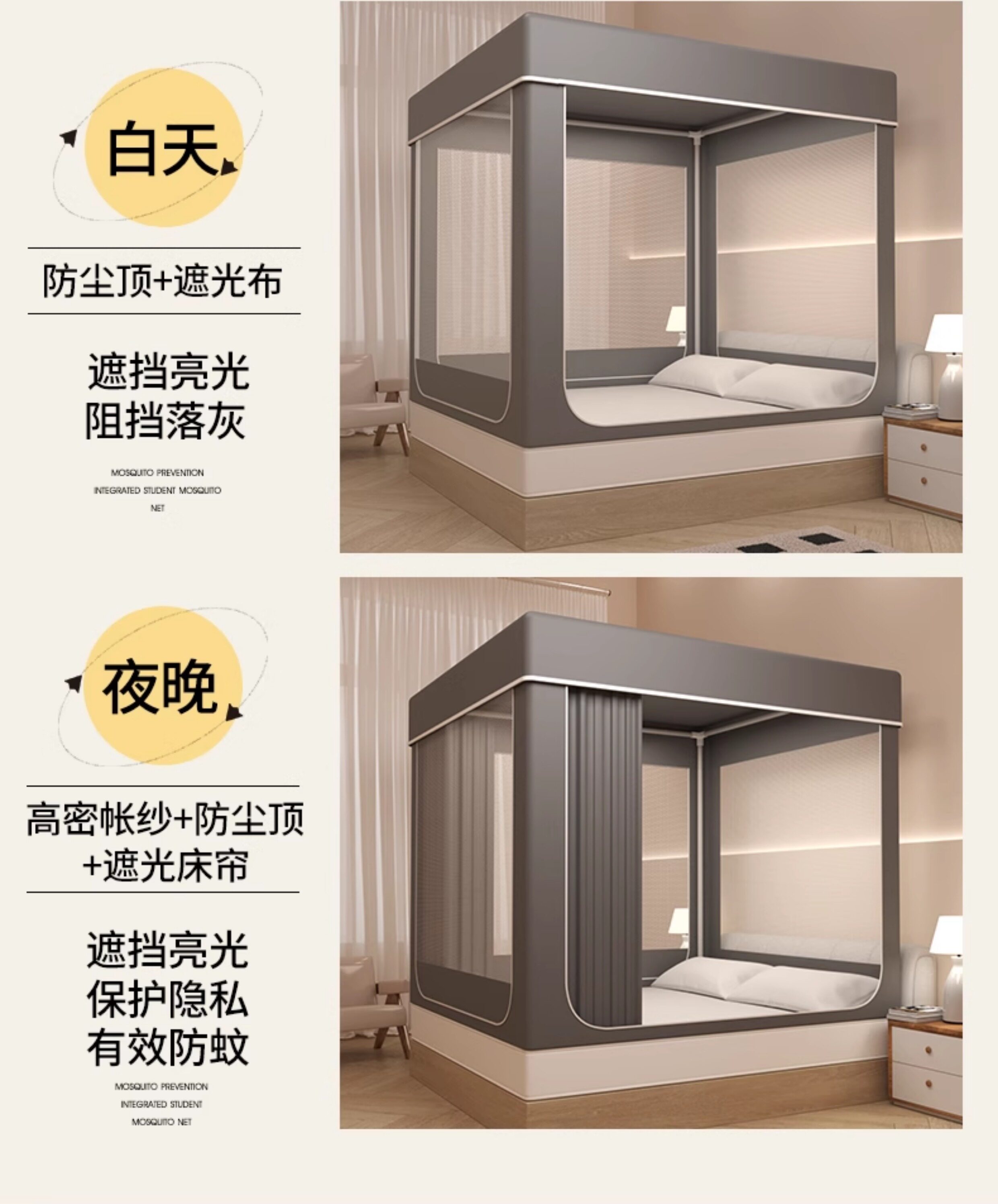 New Style Bed Canopy Mosquito Net, Full Blackout, Princess Style, Fully Enclosed Bedroom Bed Curtain for Students, Single/Double, Home Use, All-In-One