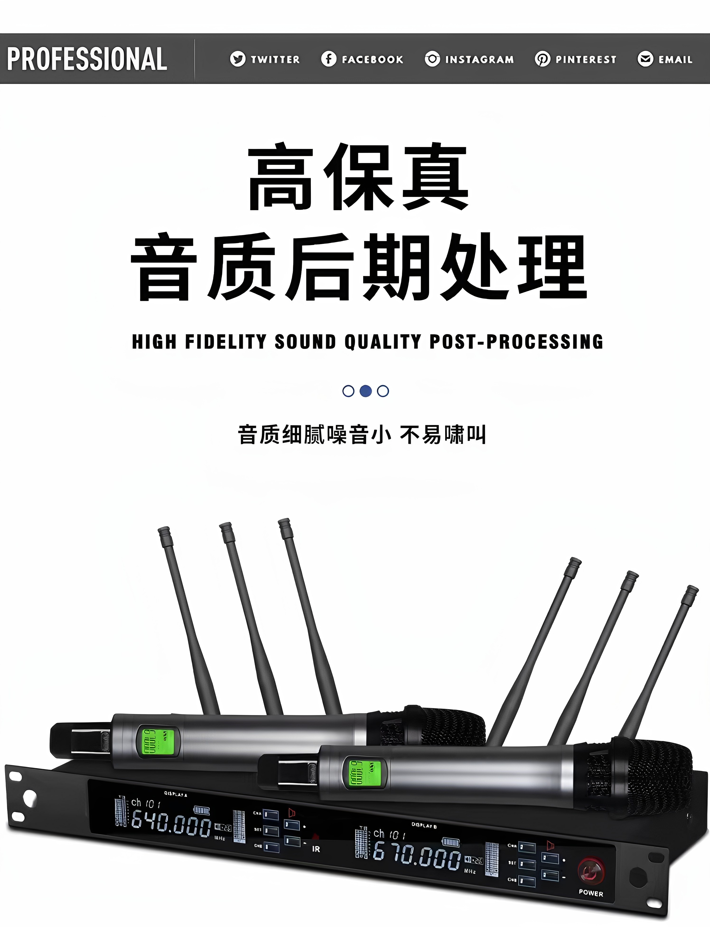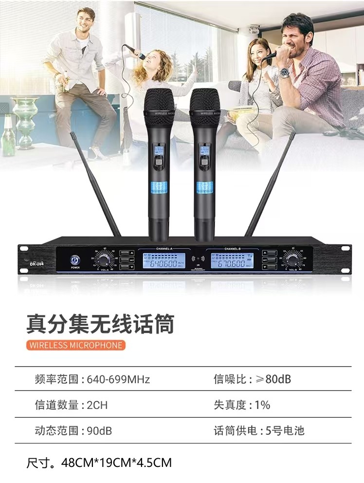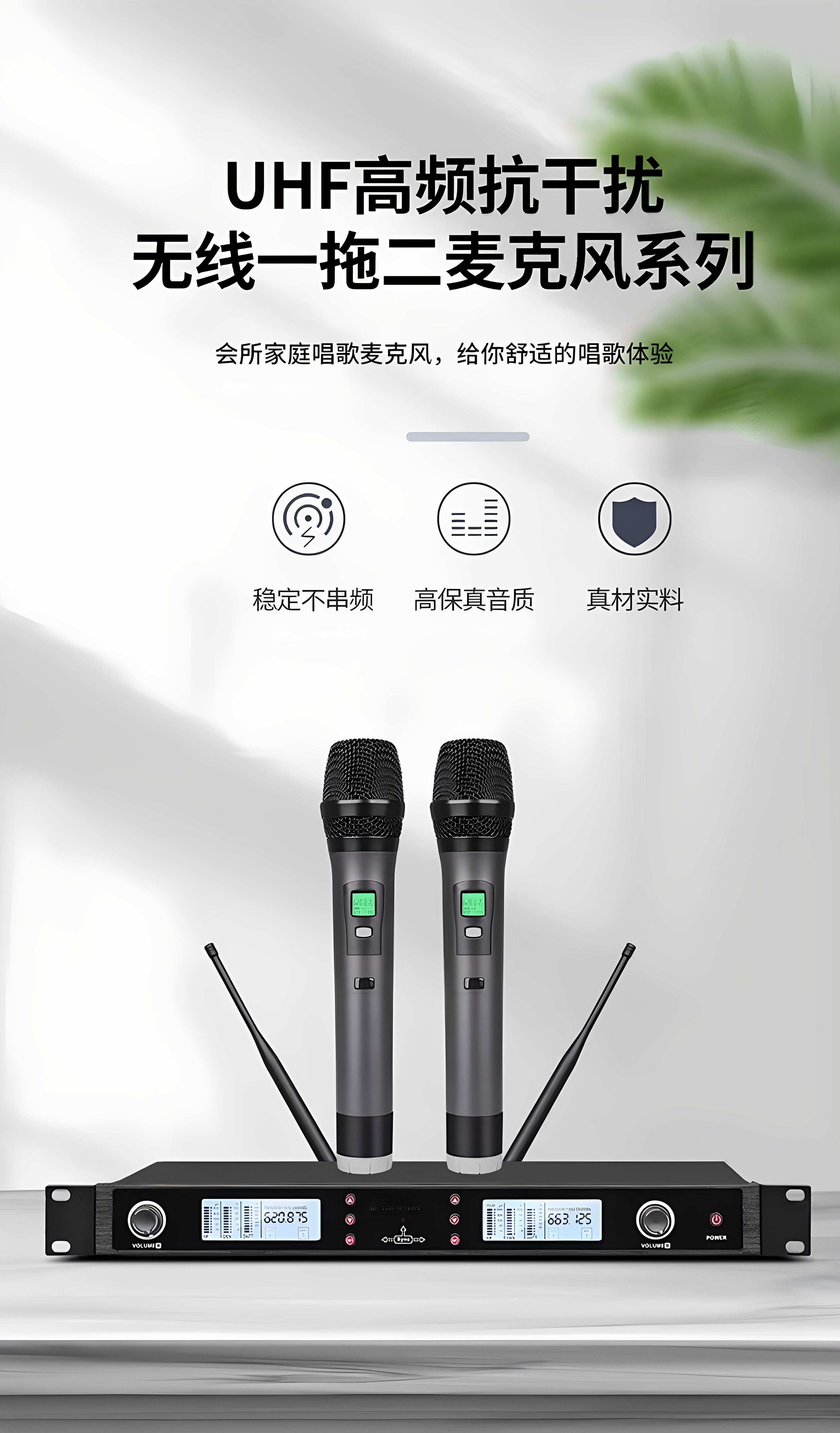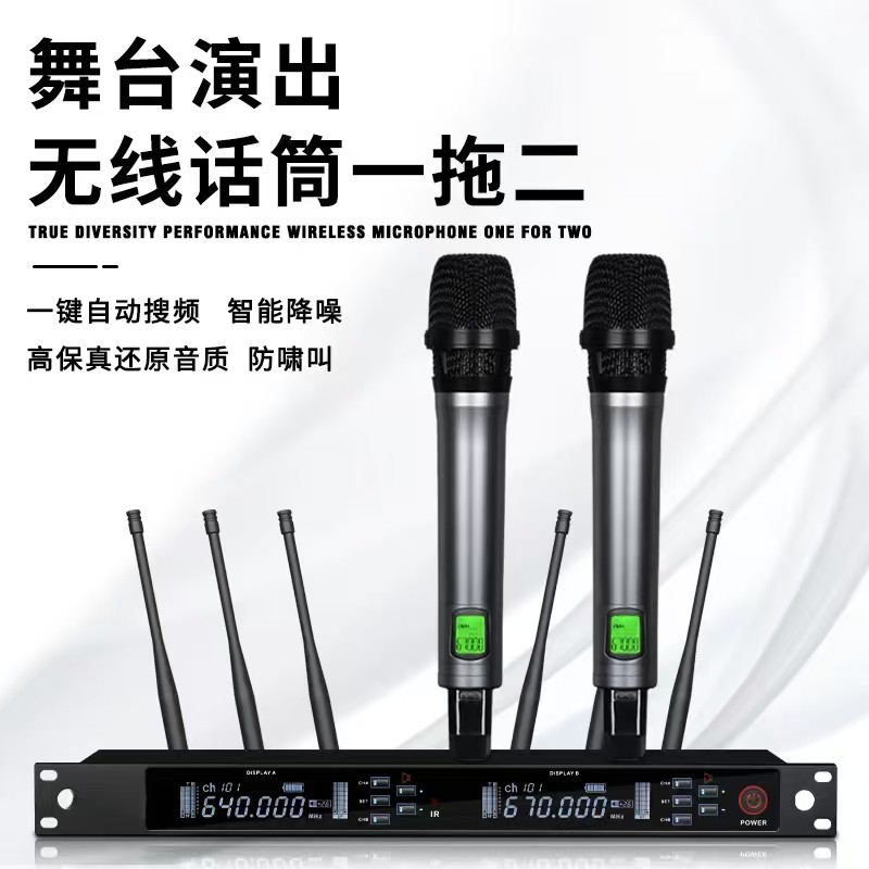 专业无线话筒防啸叫一拖二家用唱歌会议酒馆KTV卡拉OK演出麦克风