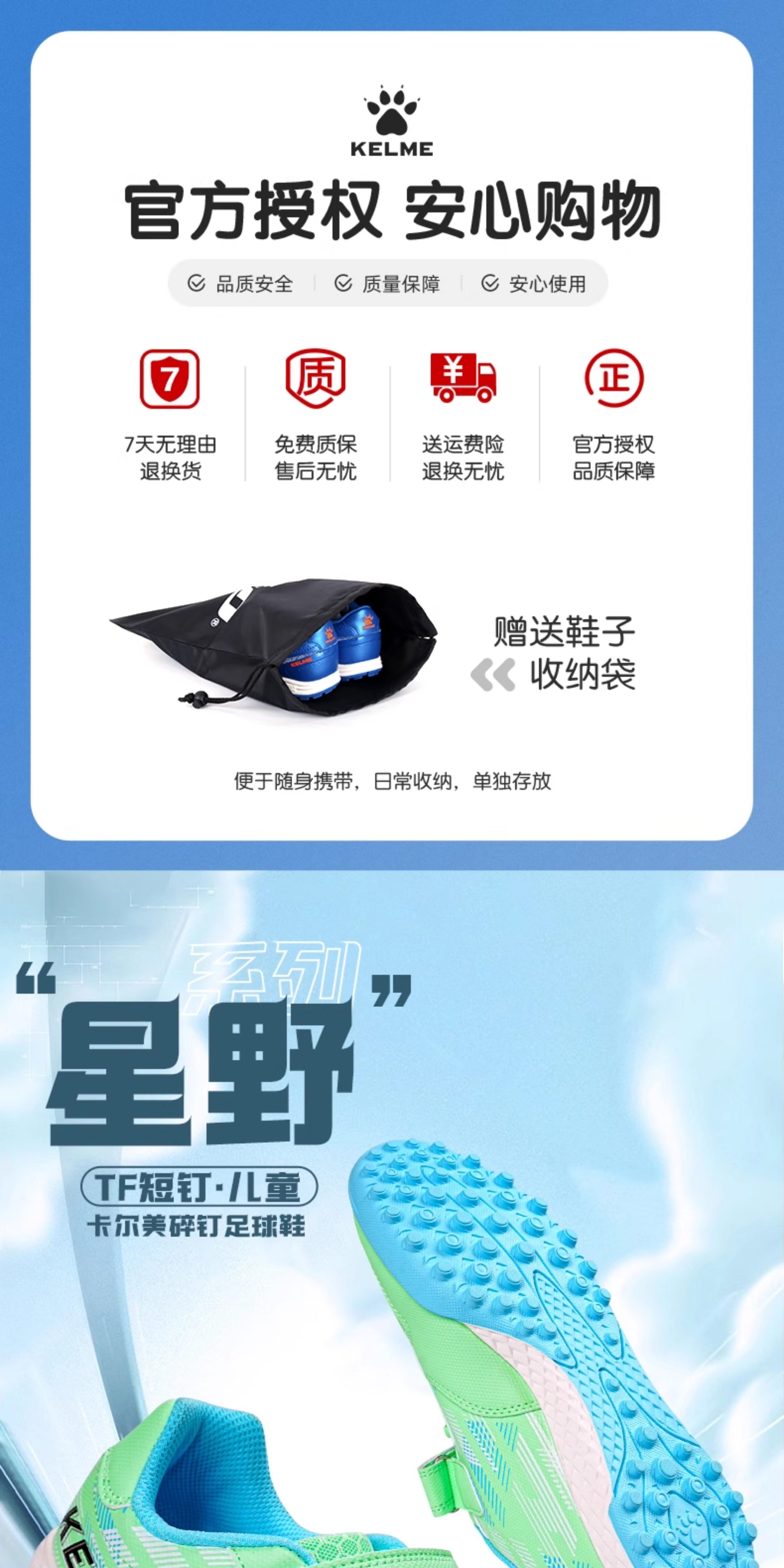 KELME Karme Children's Football Shoes Broken Nail Competition
