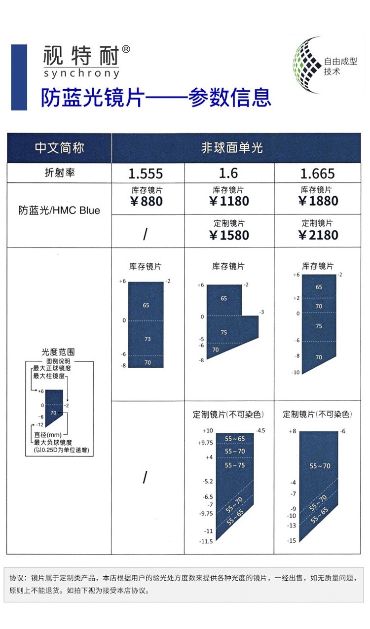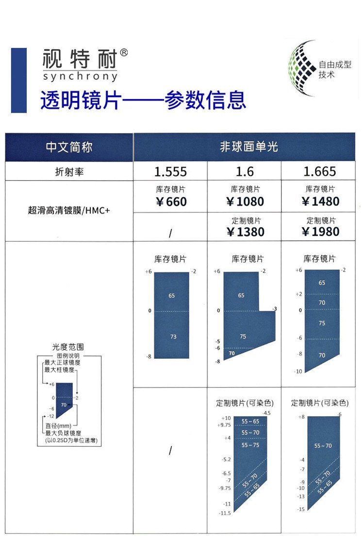 镜片折射率 1.60(较薄),1.67(超薄),1.56(较薄)