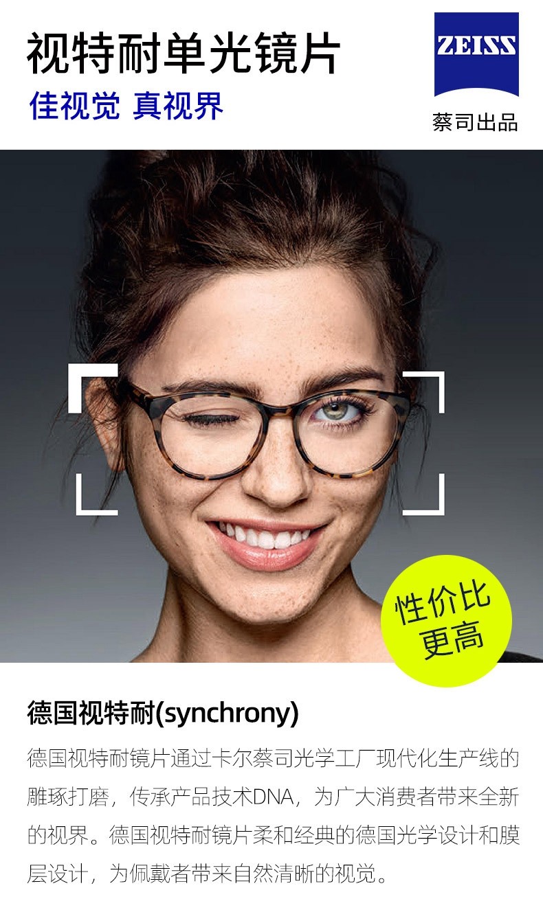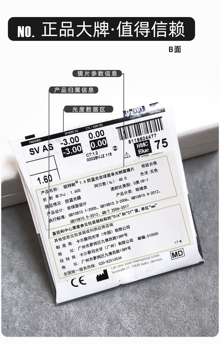 正品蔡司视特耐近视镜片可配散光度数非球面防蓝光超薄眼镜片配镜