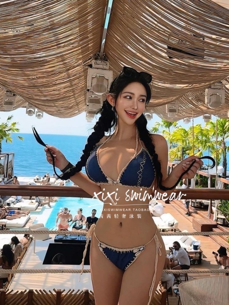 Sissi traje de baño denim azul tejido a mano bikini de hilo chica caliente halter sexy isla vacaciones nicho traje de baño