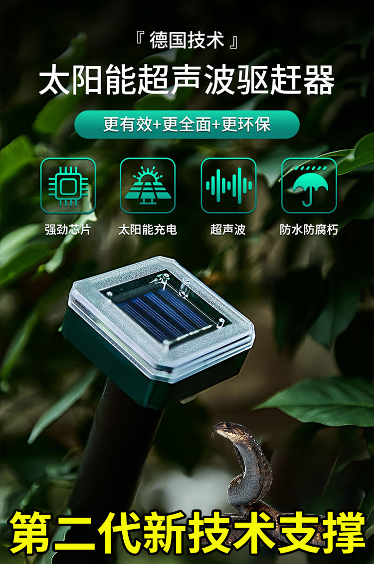 驱蛇神器太阳能超声波防蛇【比雄黄粉强】户外室内防雨驱蛇器装置