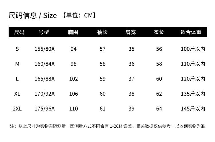 China (cm) 160-165/84-86 165-170 / 88-90 167-172 / 92-96 168-173 / 98-102 170-176 / 106-110