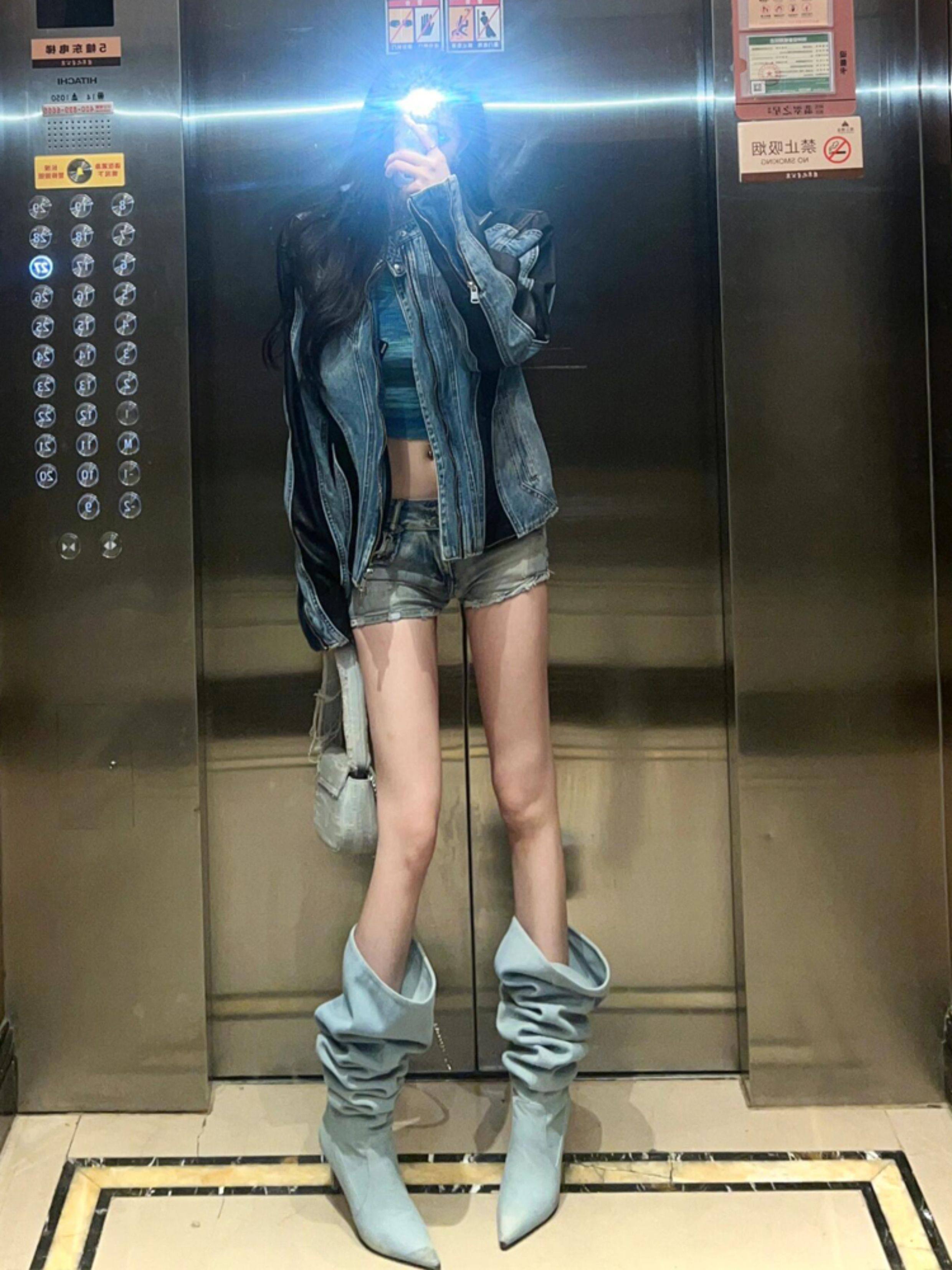 Denim Blue Hot Girl Slouch Boots, Stiletto High-Heeled Boots, Large Calf Circumference Over-The-Knee Long Boots, Women's Autumn and Winter Boots, High Boots