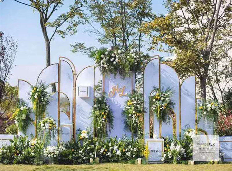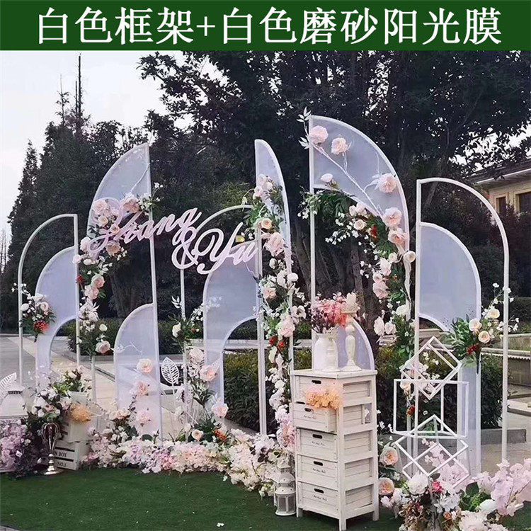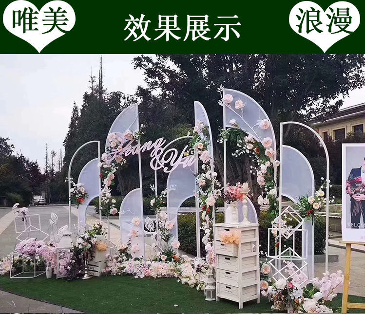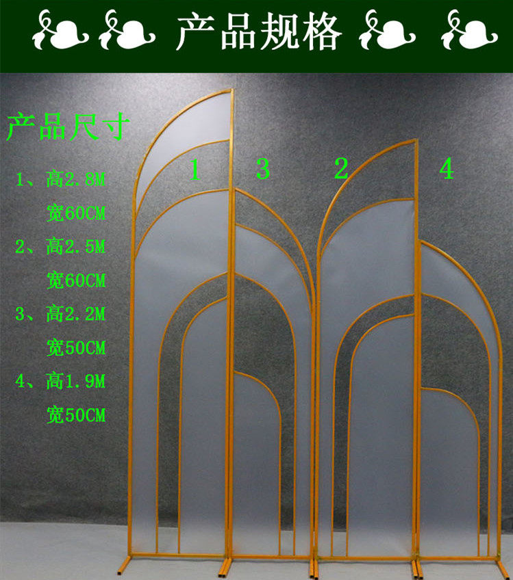 新款婚庆铁艺贴膜幻影屏风背景阳光板拱门路引婚礼道具舞台摆件