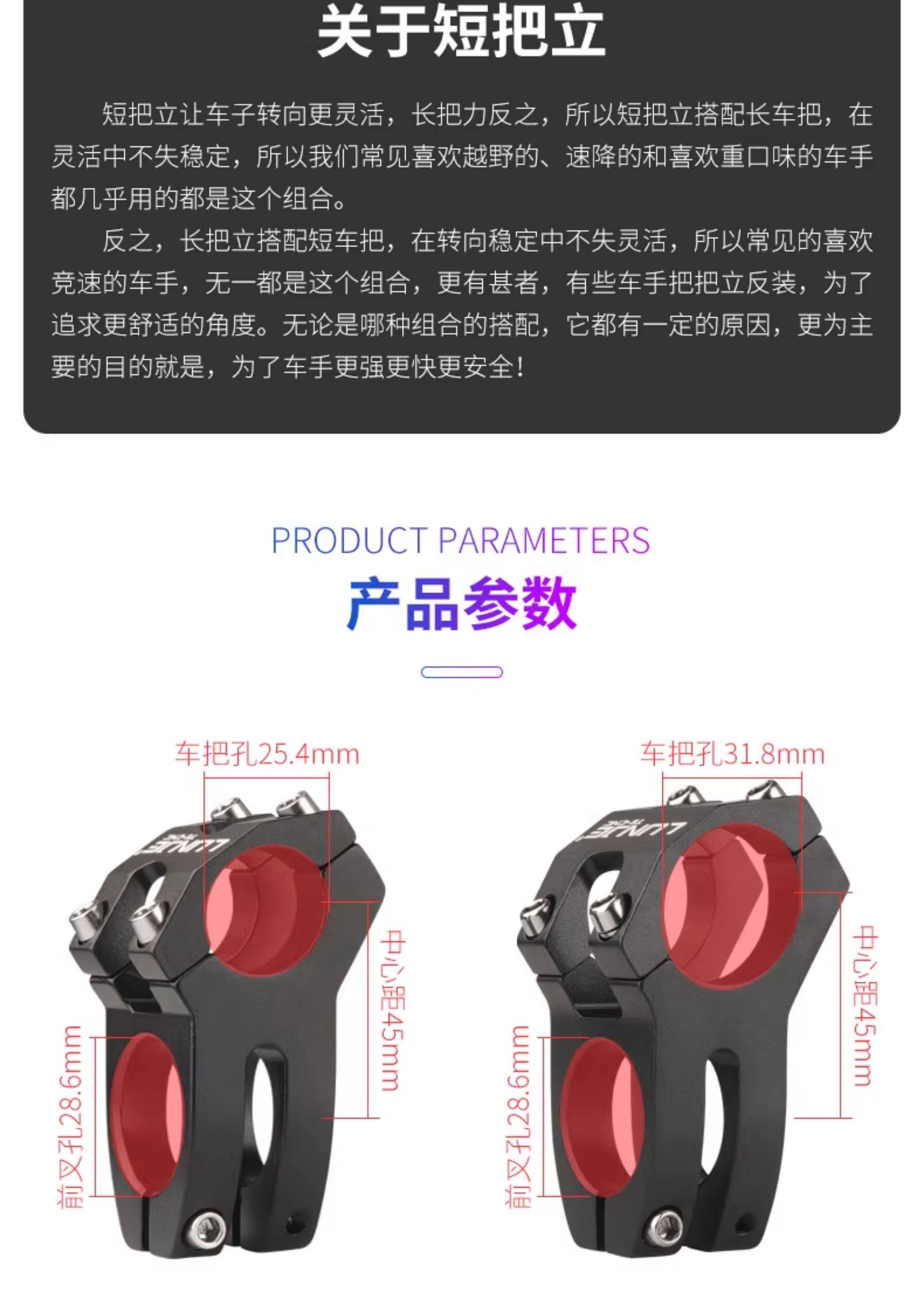 轮迹山地自行车速降把立31.8铝合金车头25.4mm死飞车改装短把立管