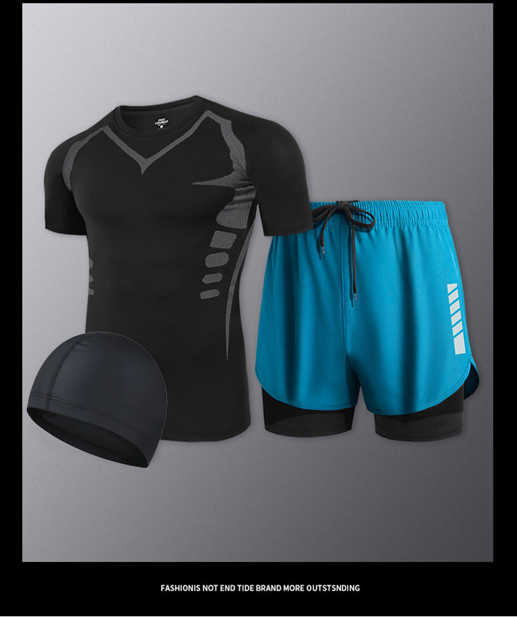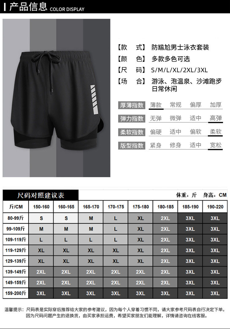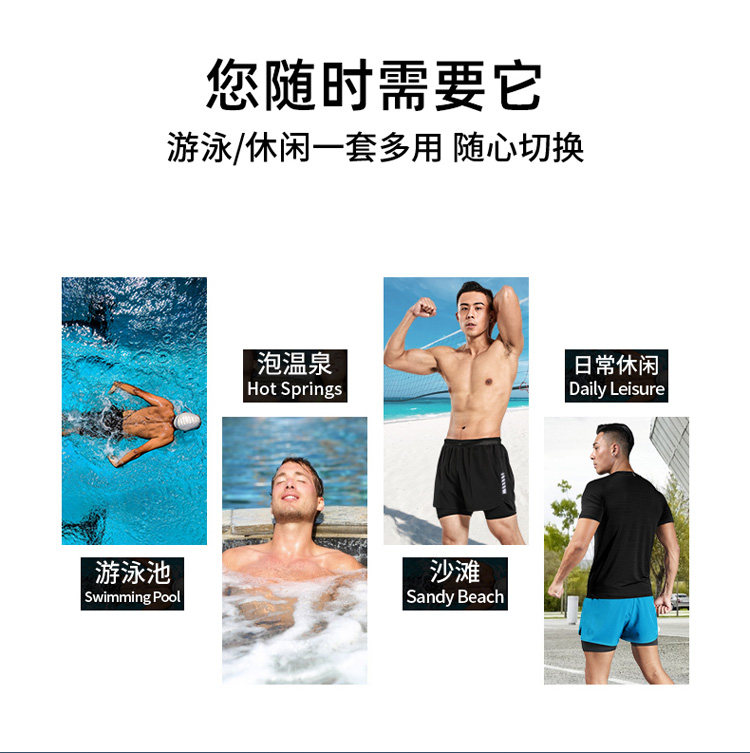 泳裤男士泡温泉套装双层速干防尴尬宽松泳衣泳装男生运动沙滩游泳