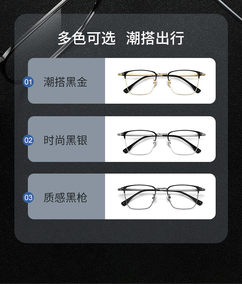 颜色分类 黑银【钛材】,黑金【钛材】,枪色【钛材】,优选蔡司镜片-更清晰-更轻薄