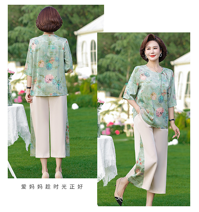 新中式妈妈夏装运动套装小个子中老年女夏季短袖T恤50岁60上衣服